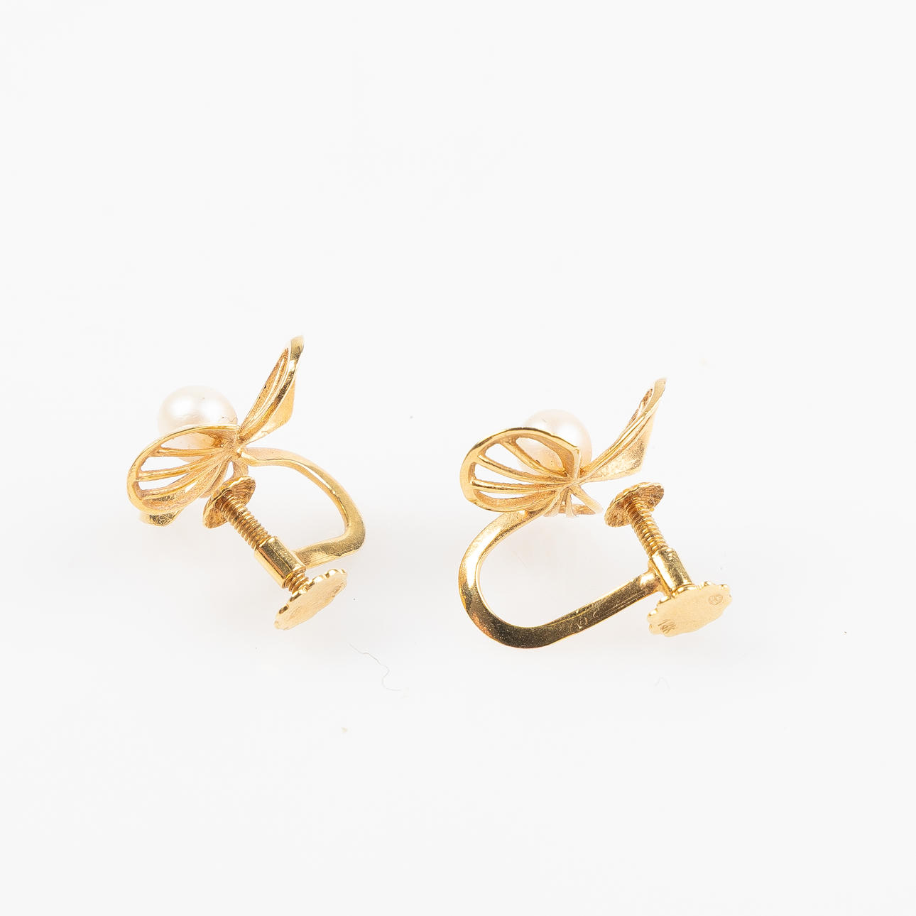 With cultured pearls, in ash from Gust. Axen. Weight about 2.4 grams.