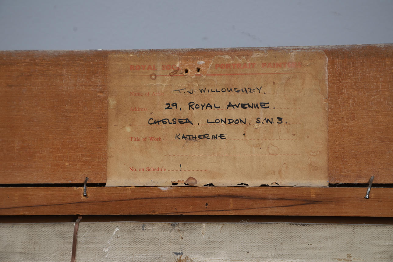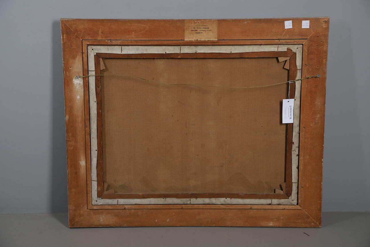 Signed, also extensively inscribed on Royal Society Portrait Painters gallery label verso, oil on canvas 71cm x 92cm (93cm x 114cm including frame).