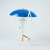 Polished brass. The screen is painted blue and the inside is painted white. Diameter 20 cm. Height 25 cm.
