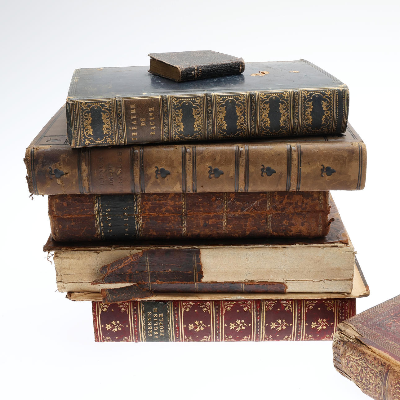 Comprising Sister Nivedita (Noble, Margaret E.) and Coomaraswamy (Ananda K.). Myths of the Hindus & Buddhists, pub. George G. Harrap, London, 1913, embossed calf; Britton (John). The Fine Arts of The English School, printed at the Chiswick Press for Longman, Hurst, Rees, Orme and Brown, London, 1812, gilt red Morocco, 41 x 33cm; and 7 other leather bound books. (11).