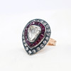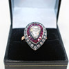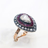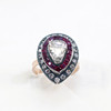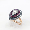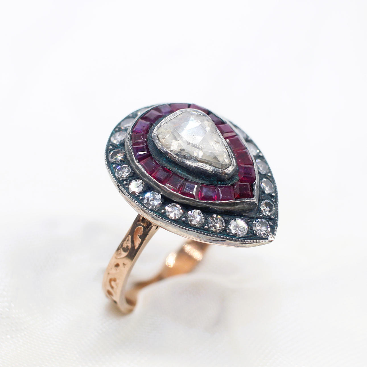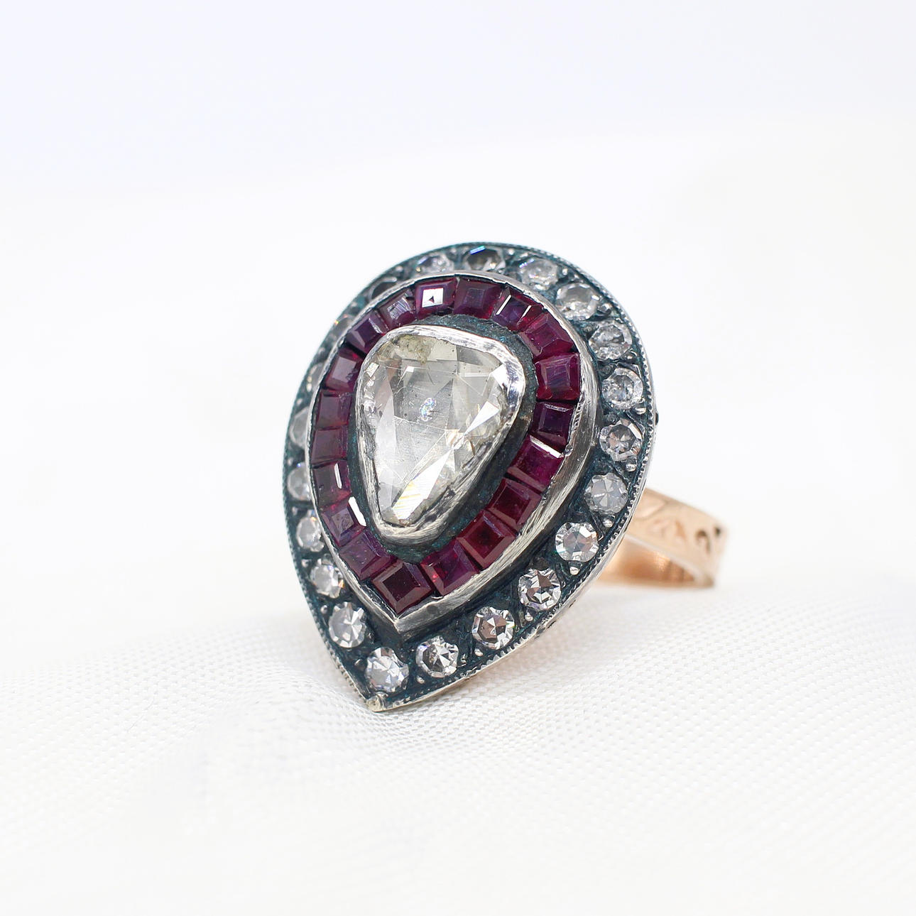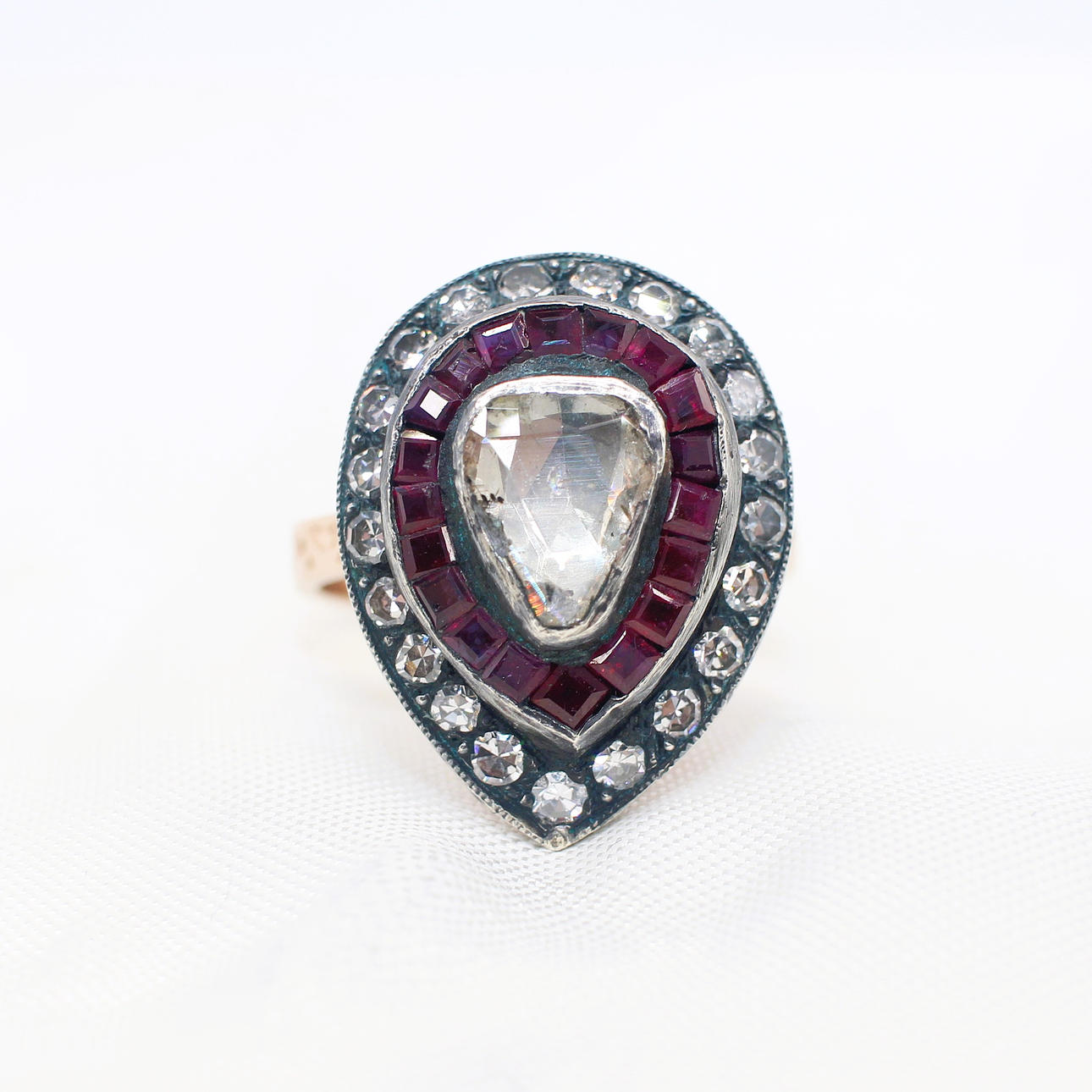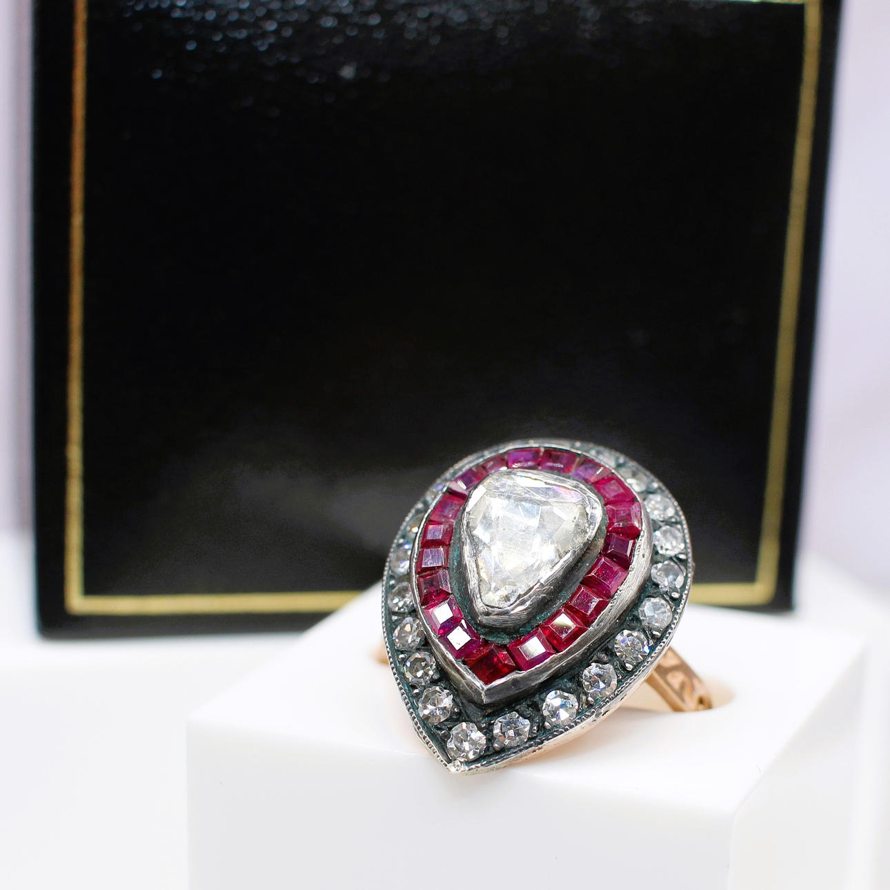 This Georgian Style Ring Is Set With A Central, Large Rose Cut Diamond And Is Surrounded By A Step Of Calibre Cut Rubies And A Second Step Of Round Eight Cut Diamonds.
