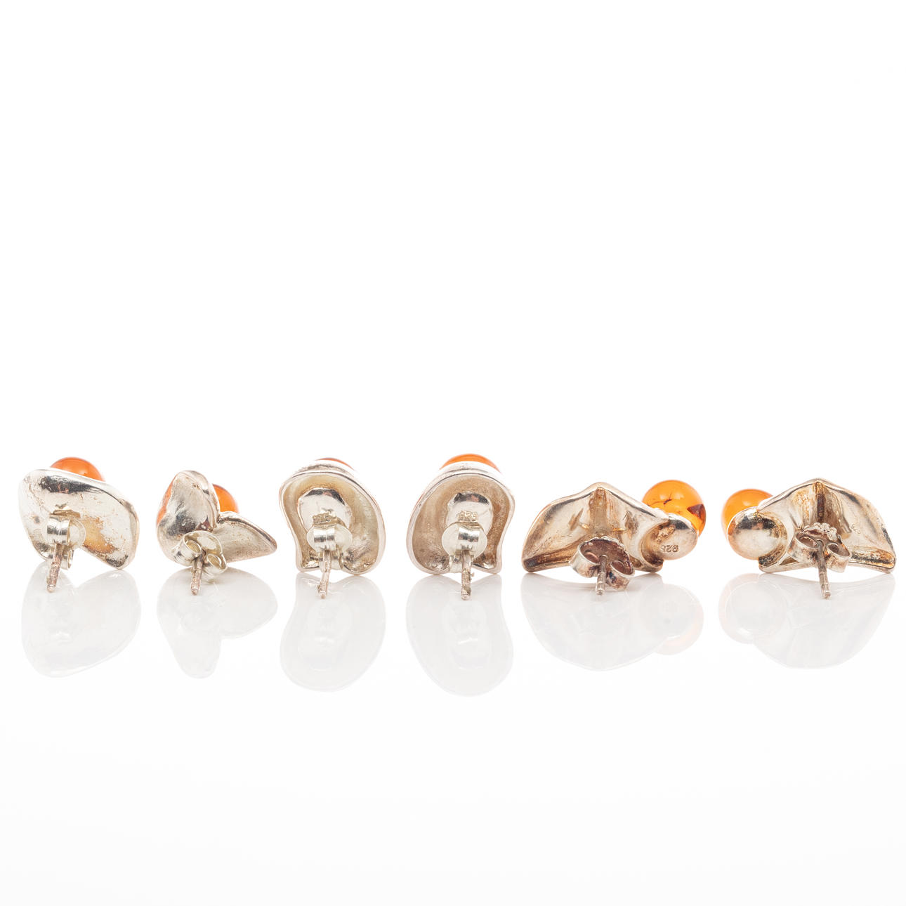4842932. EARRINGS, 3 pairs, Sterling Silver, Amber.