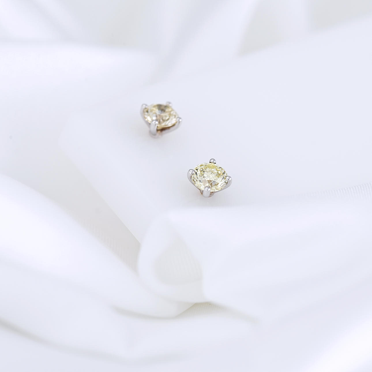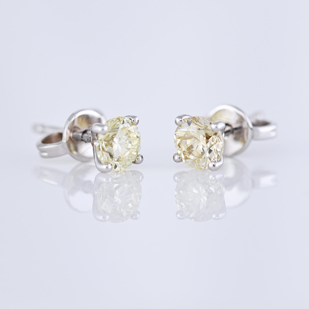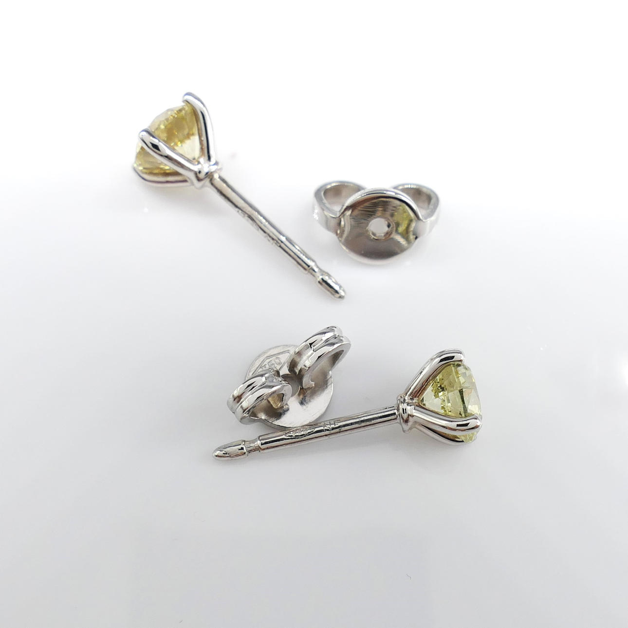 Stud earrings: 18k white gold as tested and stamped; 4-claw set; 18k white gold butterfly backs; weight 1.2 grams