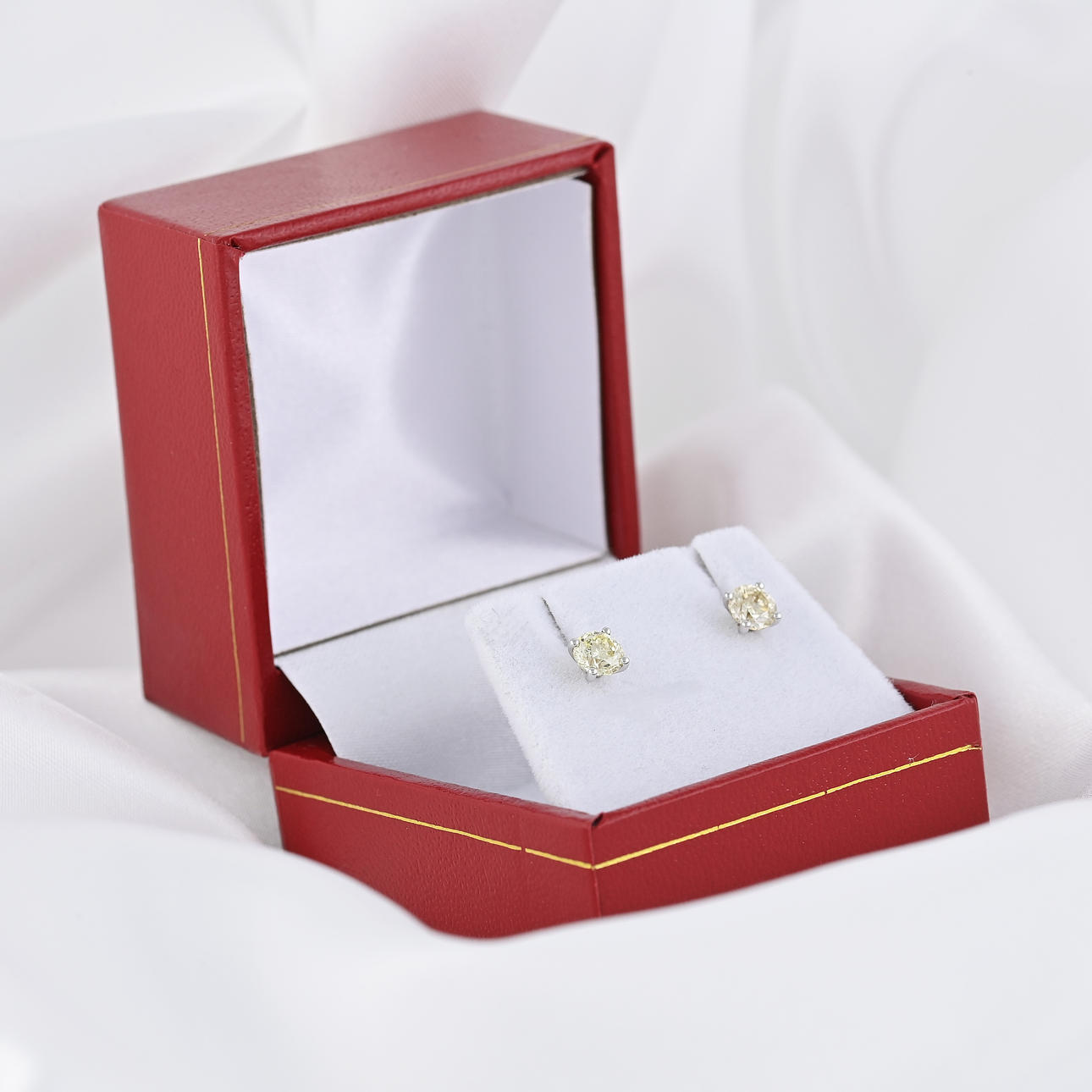 A pair of 18k white gold solitaire studs set with 0.93 carats diamonds, gift boxed