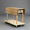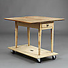 Pinewood. The leg stand painted white. Drawers in the rim. Length 104 cm, total width 110 cm, height 73 cm.