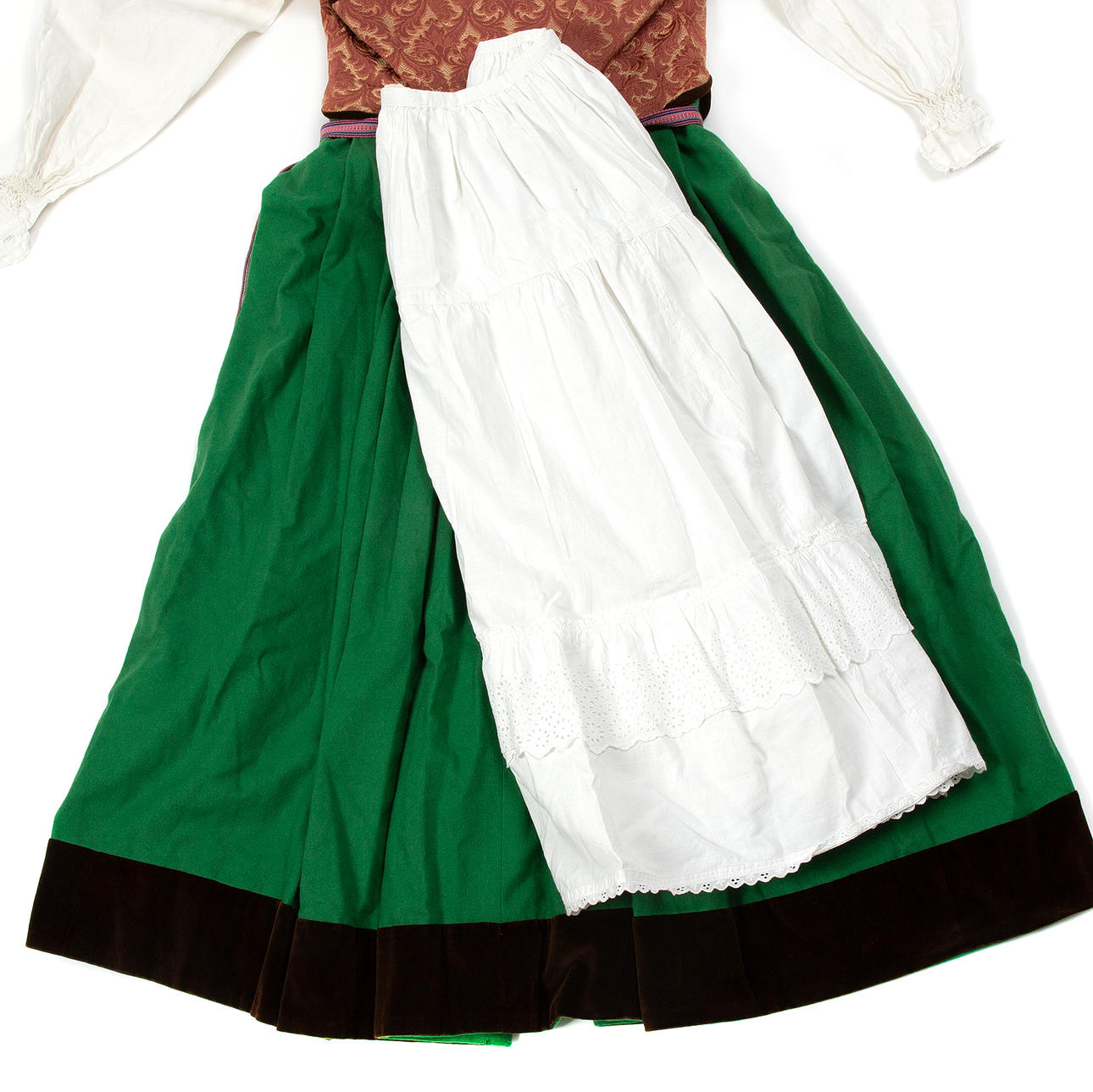 Probably from Kullaberg. 5 pieces, consisting of two headgear, an apron, blouse, petticoat and costume. Size approx. 38-40.