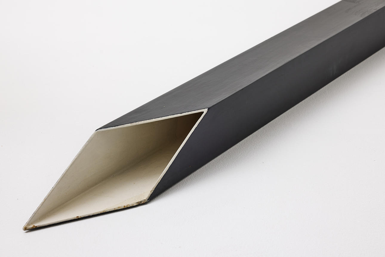 Painted metal, 500 x 8 x 8 cm. Mounted hung.