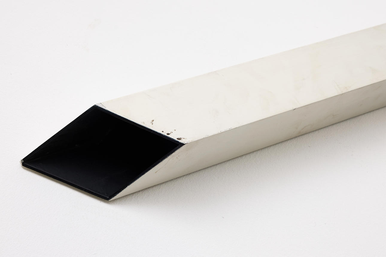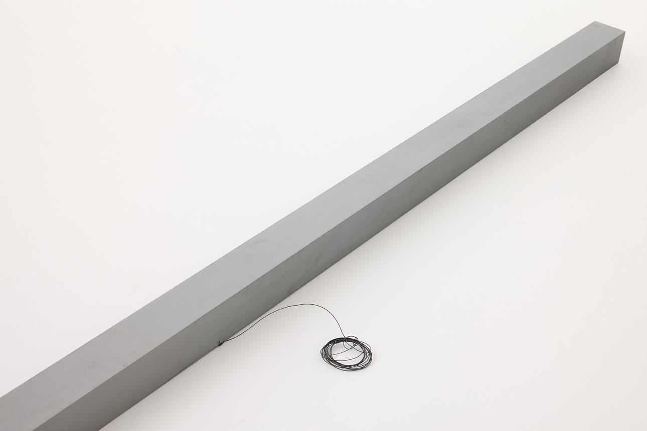 Painted metal, 8 x 8 x 500 cm. Mounted hanging horizontally.