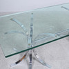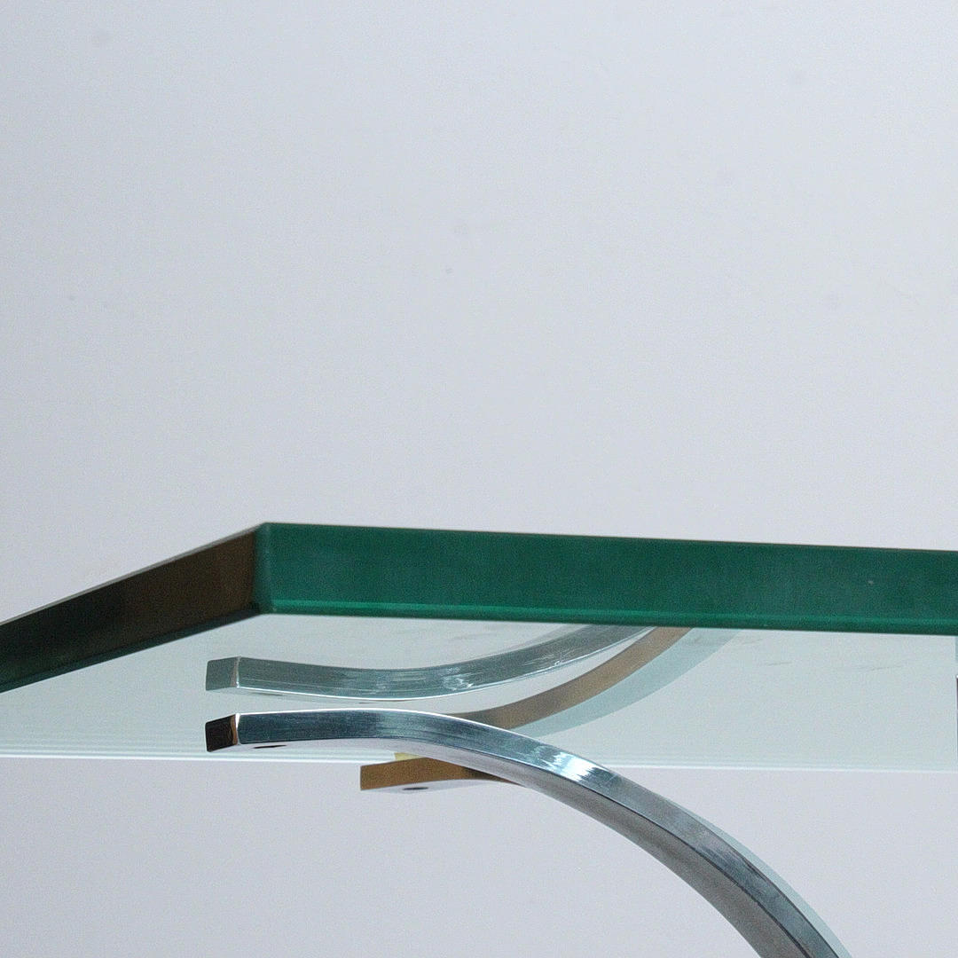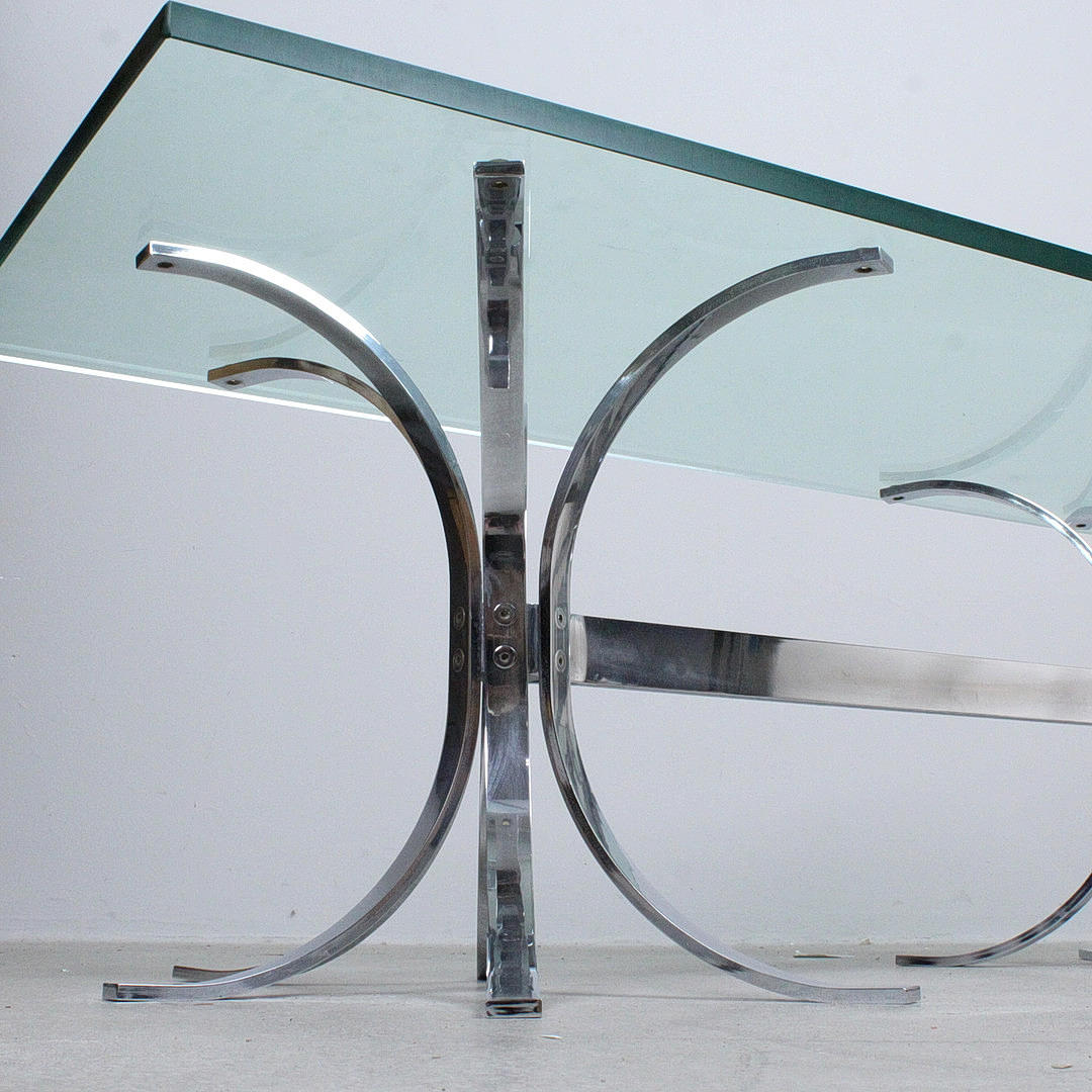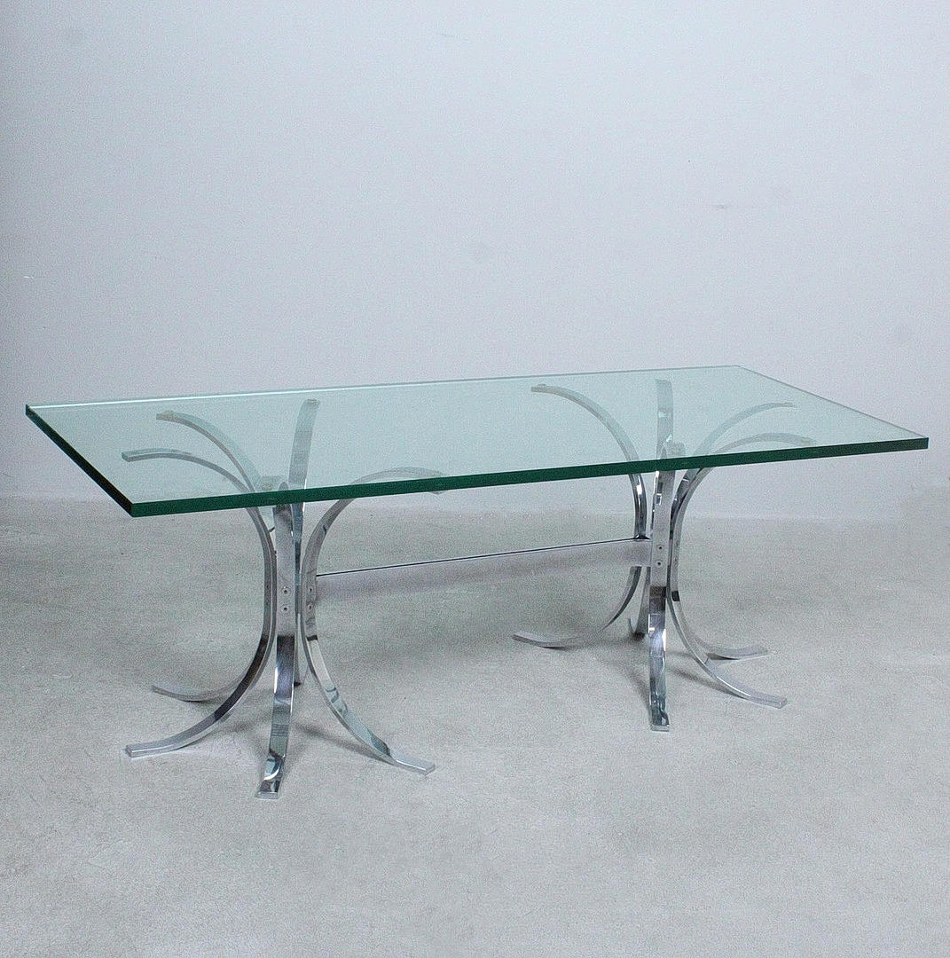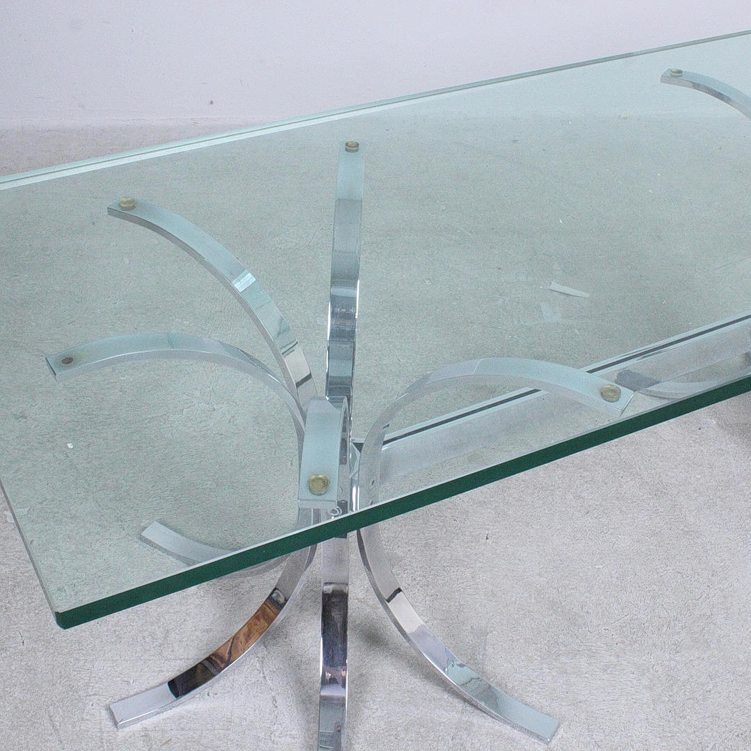 Coffee table/coffee table, steel, glass, 1970s, chrome-plated steel frame, rectangular glass table top, dimensions approx.: h. 51.5 cm, W 145.5 cm, depth 60 cm, thickness of the plate 2.5 cm.