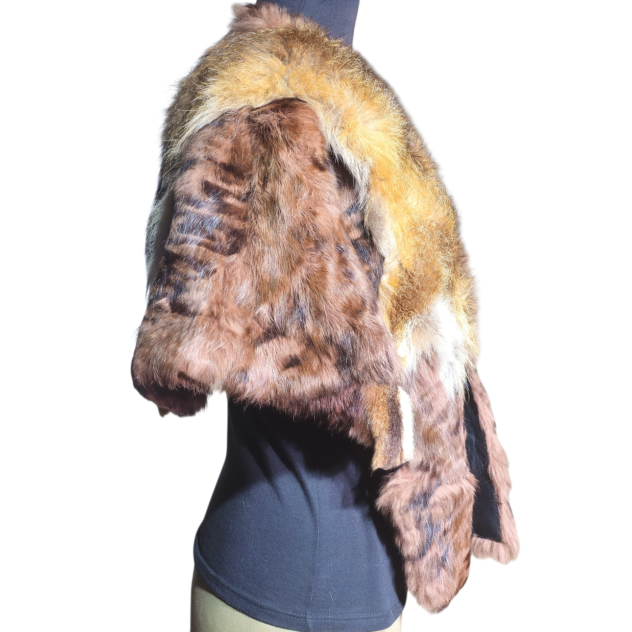 Fox and brown leather cape.