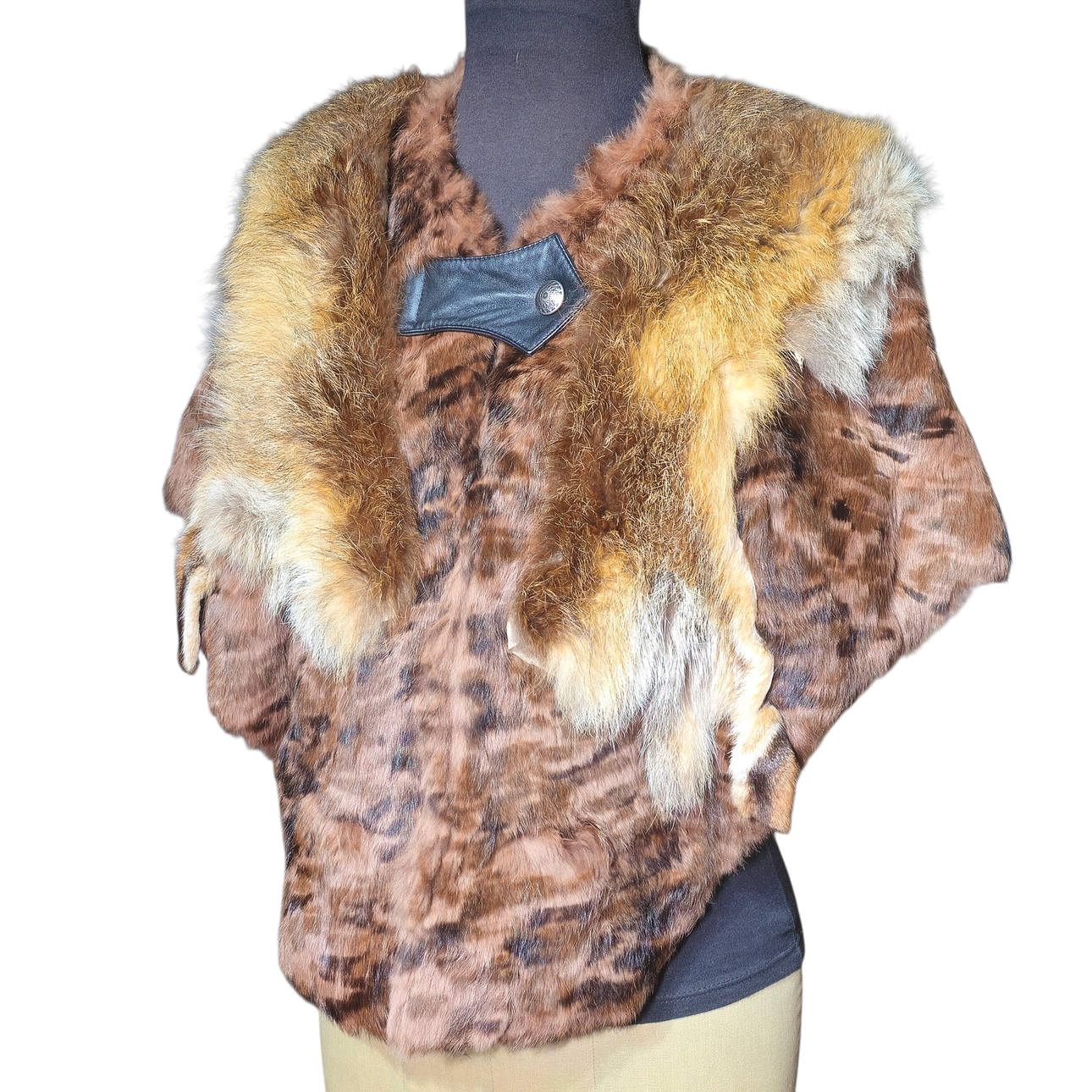 4848958. Fox and brown leather cape.