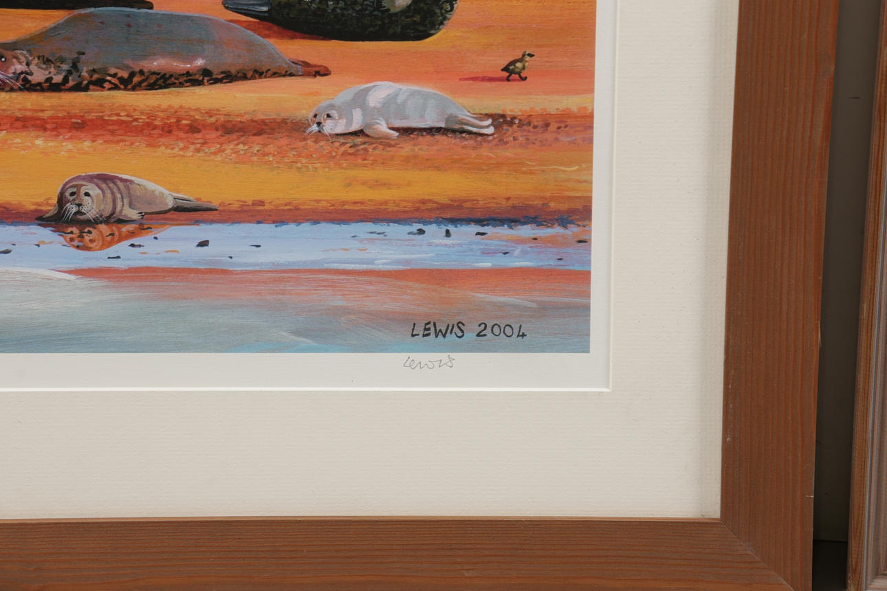 To include a Brian Lewis (20th Century, British) print titled 'The Seals On Blakeney Point', signed and numbered 50/500, frame measures 92cm x 47.5cm, together with a William Neill print titled 'Portman Long', signed and numbered 128/500, frame measures 72cm x 43cm. (2).