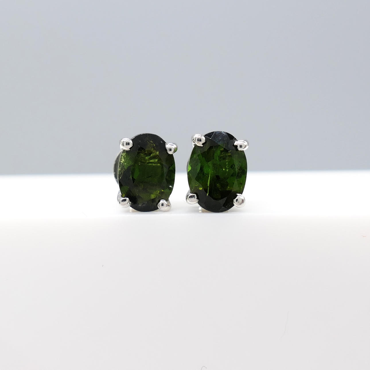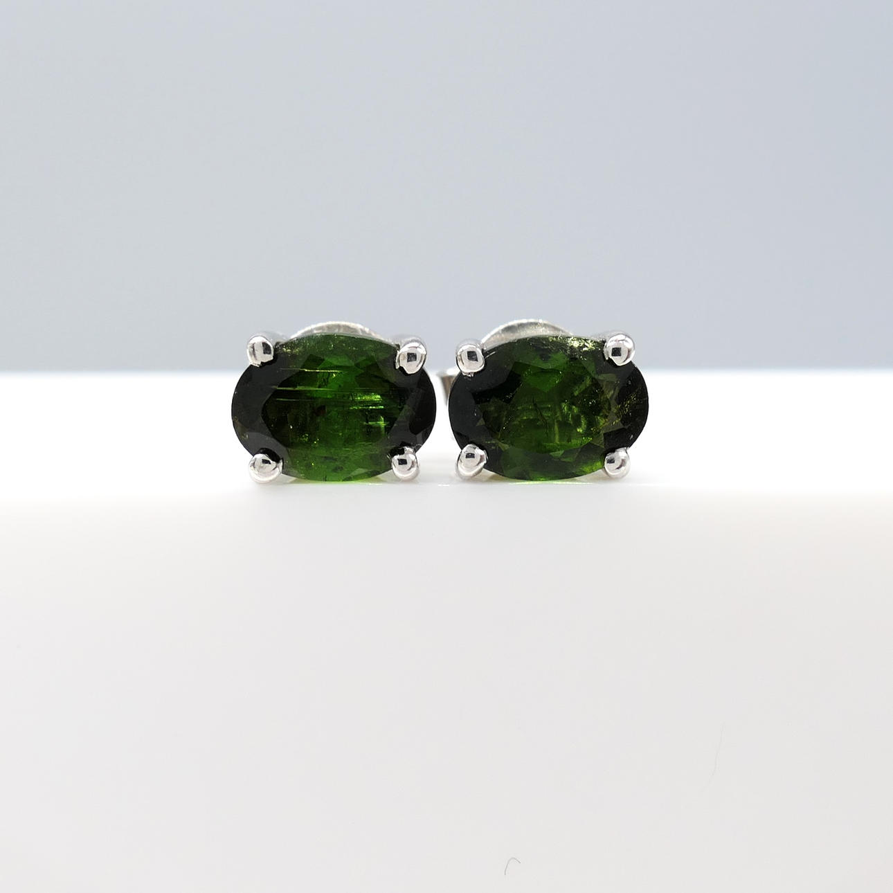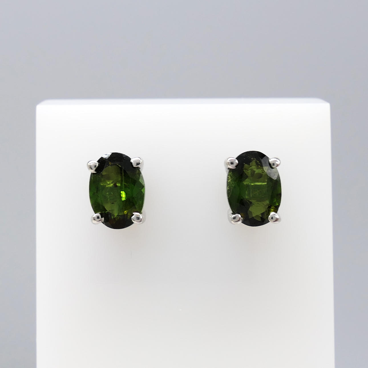 Gemstones: natural green tourmaline; 2 x oval-cut; 1.30ct total approx; 6 x 4mm each
