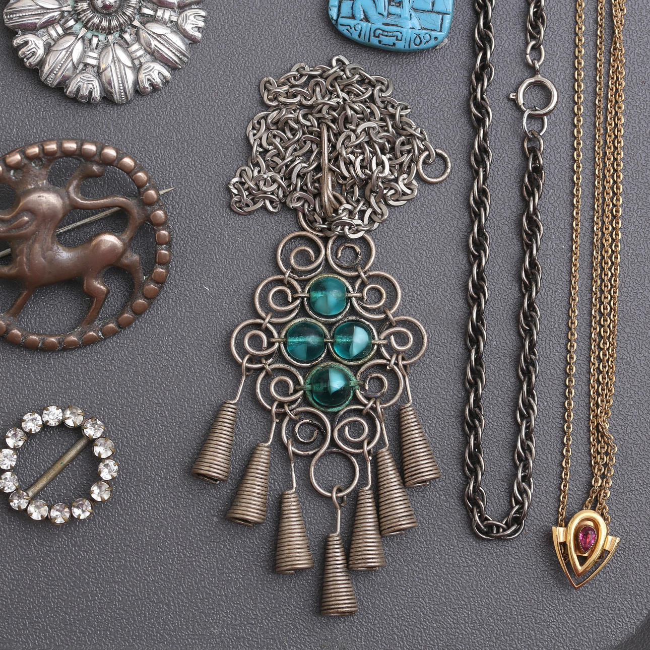 Knot on chain with fixed pendant