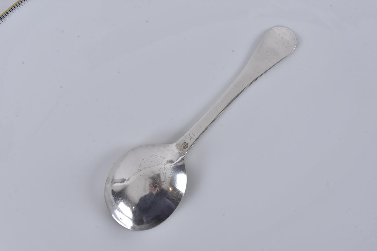 smooth with the closest round spoon leaf, traces of engraved laurel wreath, l 18 cm, weight 35 grams.
