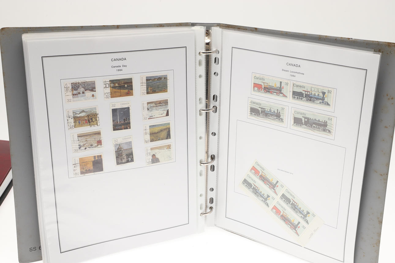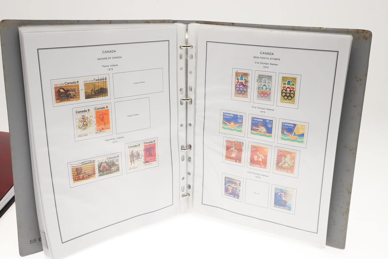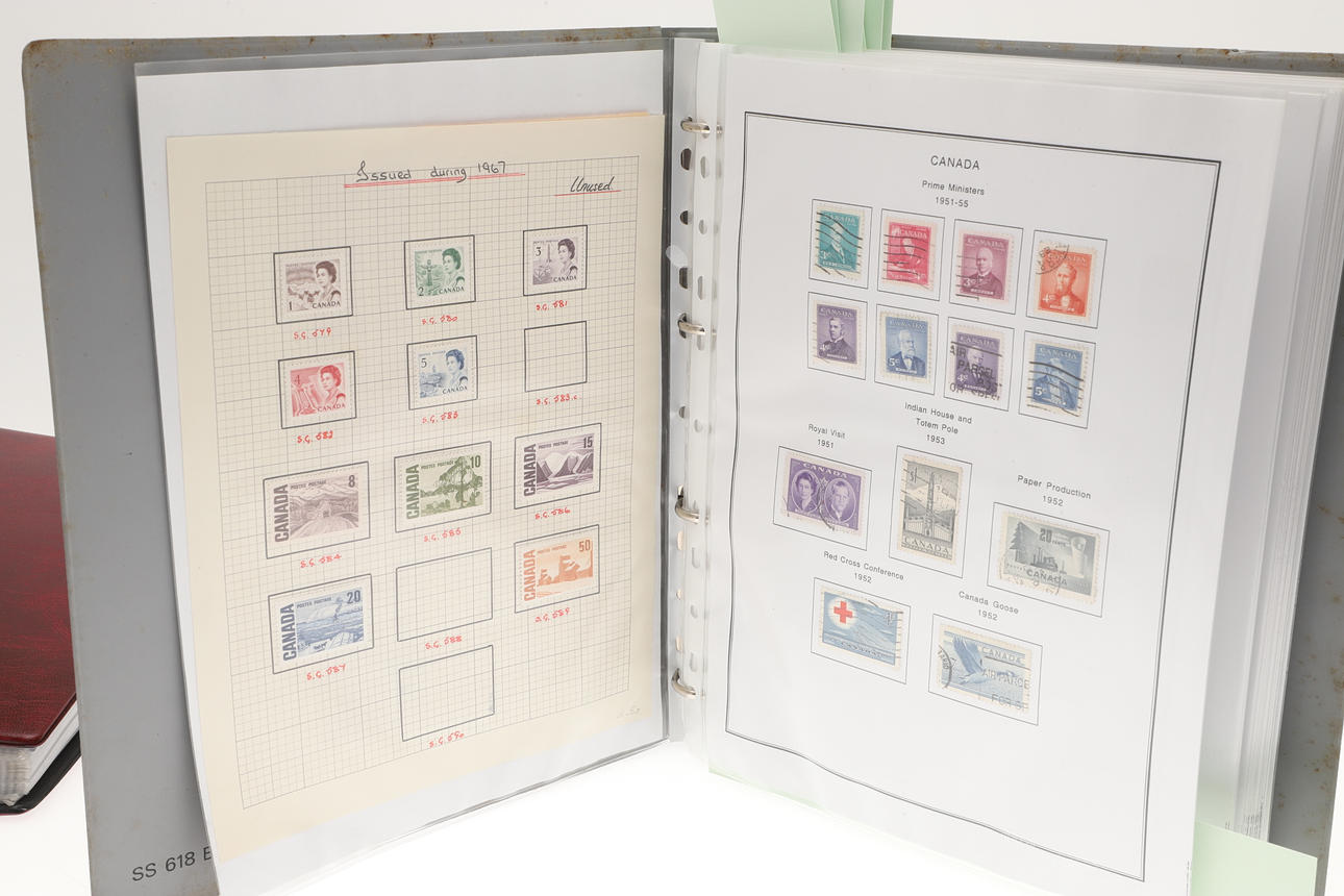 Including two well laid out albums with QEII Canadian mint and used stamps, including Prime Ministers, QEII Definitives, Trains, 1974 Olympics, Mammals, and many more. Albums 32cms by 27cms. (2).