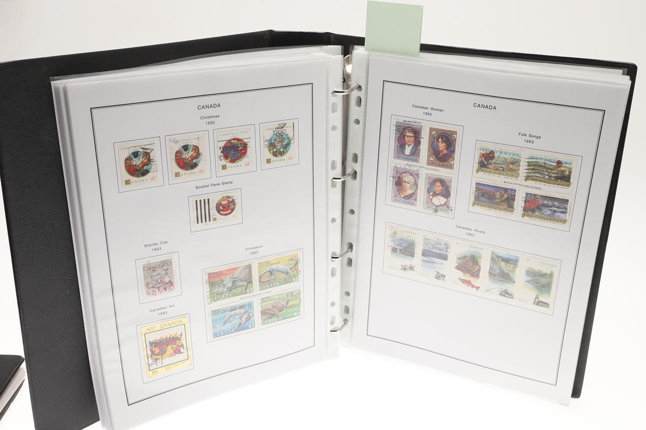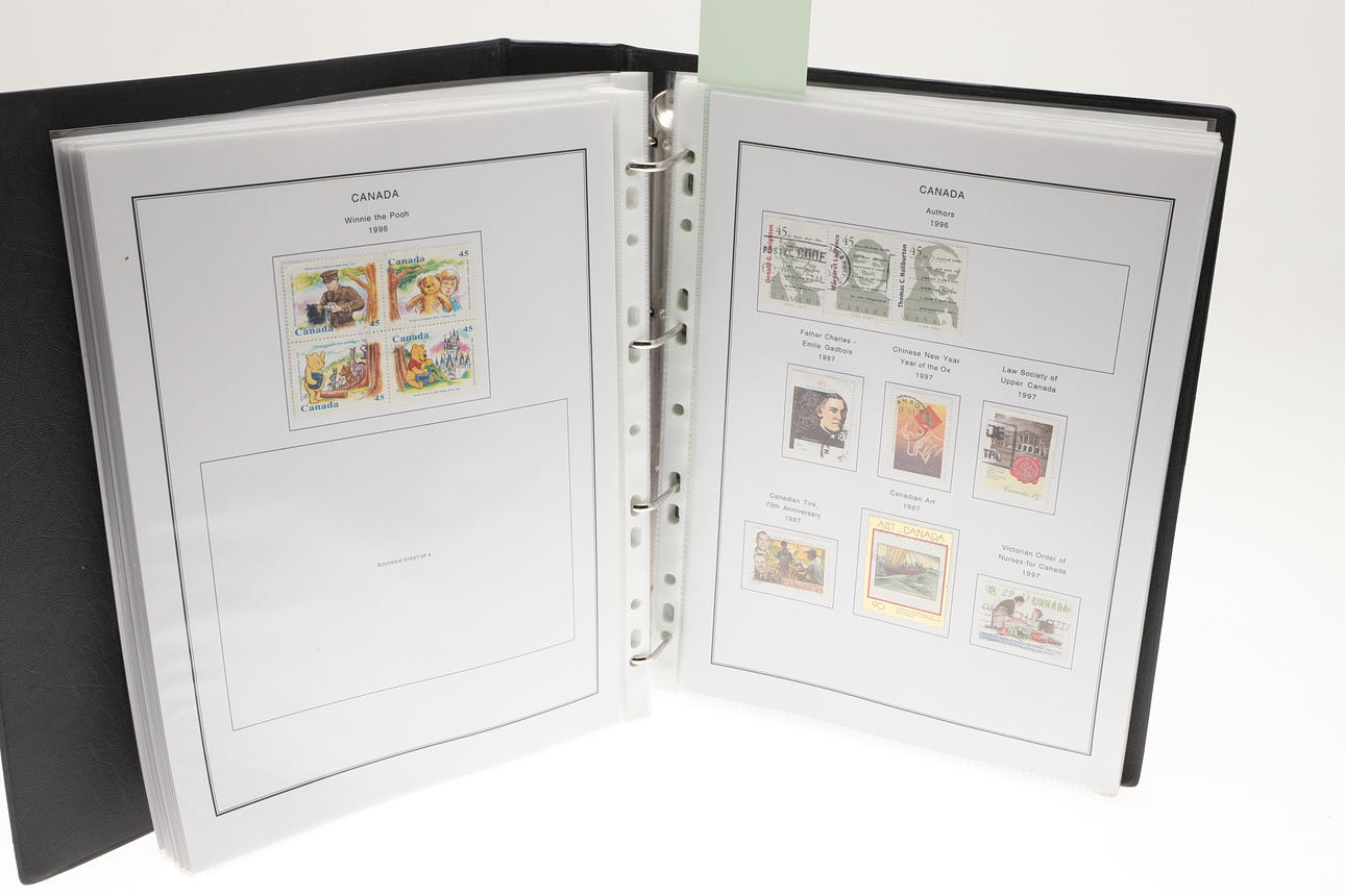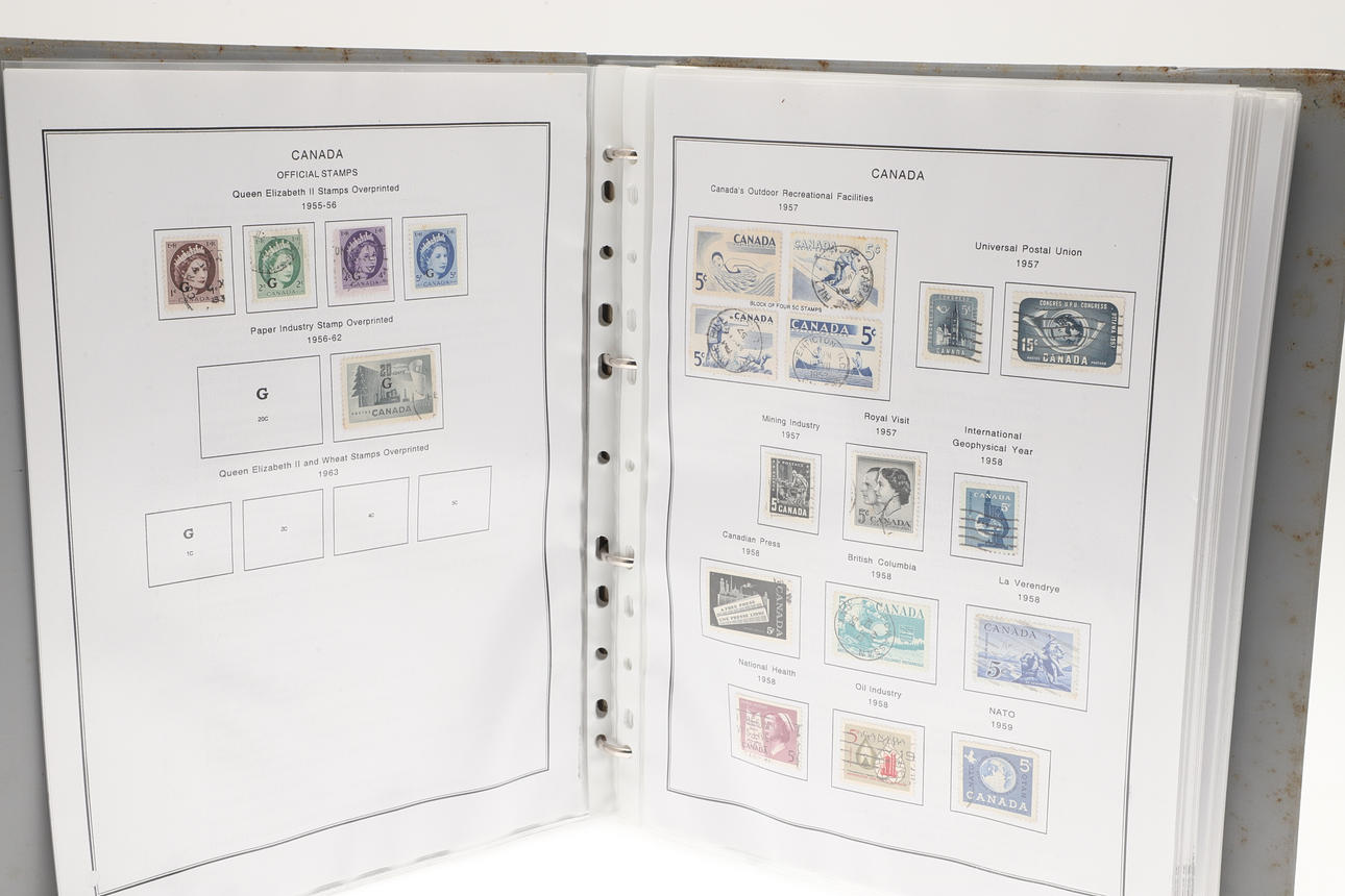 Including two well laid out albums with QEII Canadian mint and used stamps, including Prime Ministers, QEII Definitives, Trains, 1974 Olympics, Mammals, and many more. Albums 32cms by 27cms. (2).