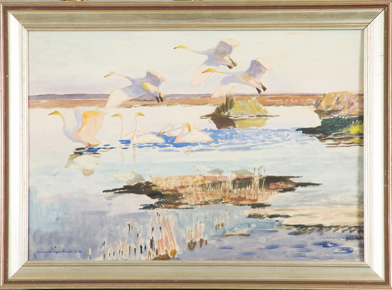 485100. LENNART SEGERSTRÅLE. Swans, watercolour, signed.