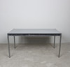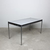 chromed metal frame with grey plate, dimensions (in cm): W 150, H 74.5, D 75.