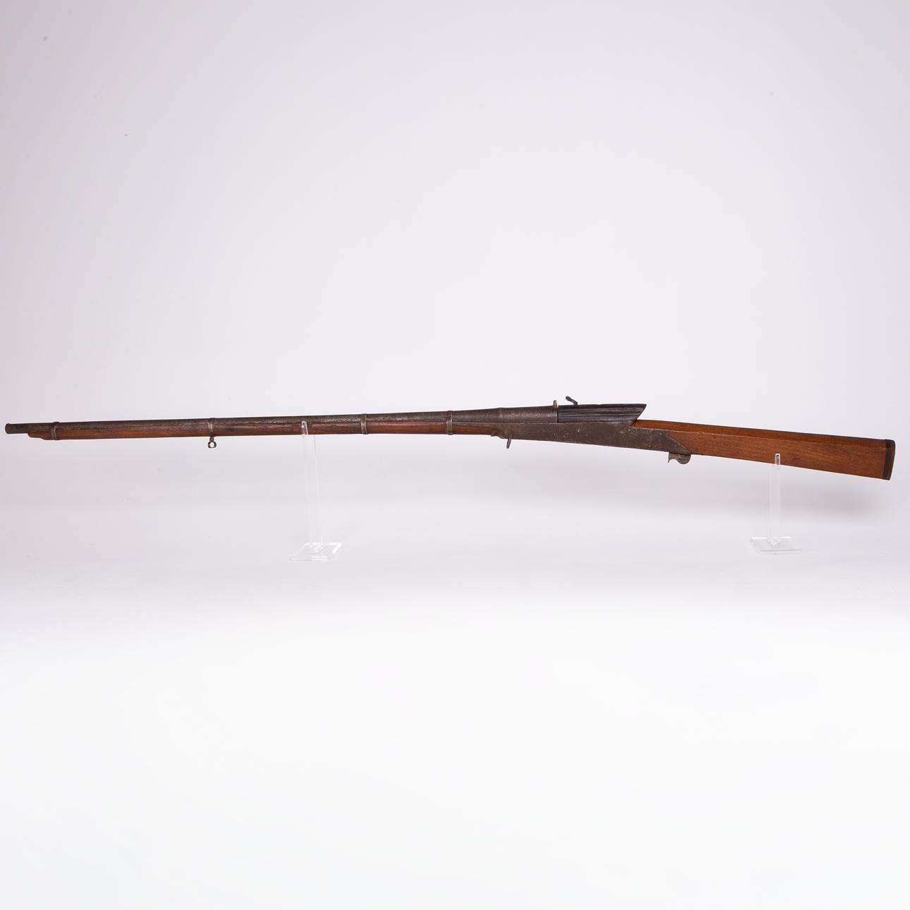 Fittings in iron. Smooth-bore barrel in caliber 15,44mm. Length 152 cm.