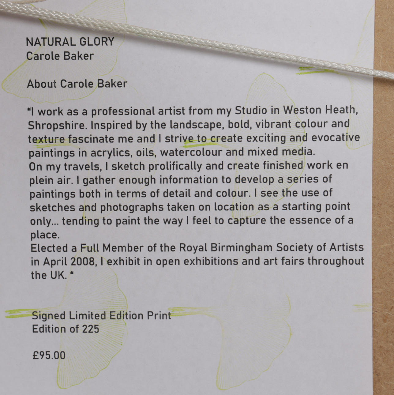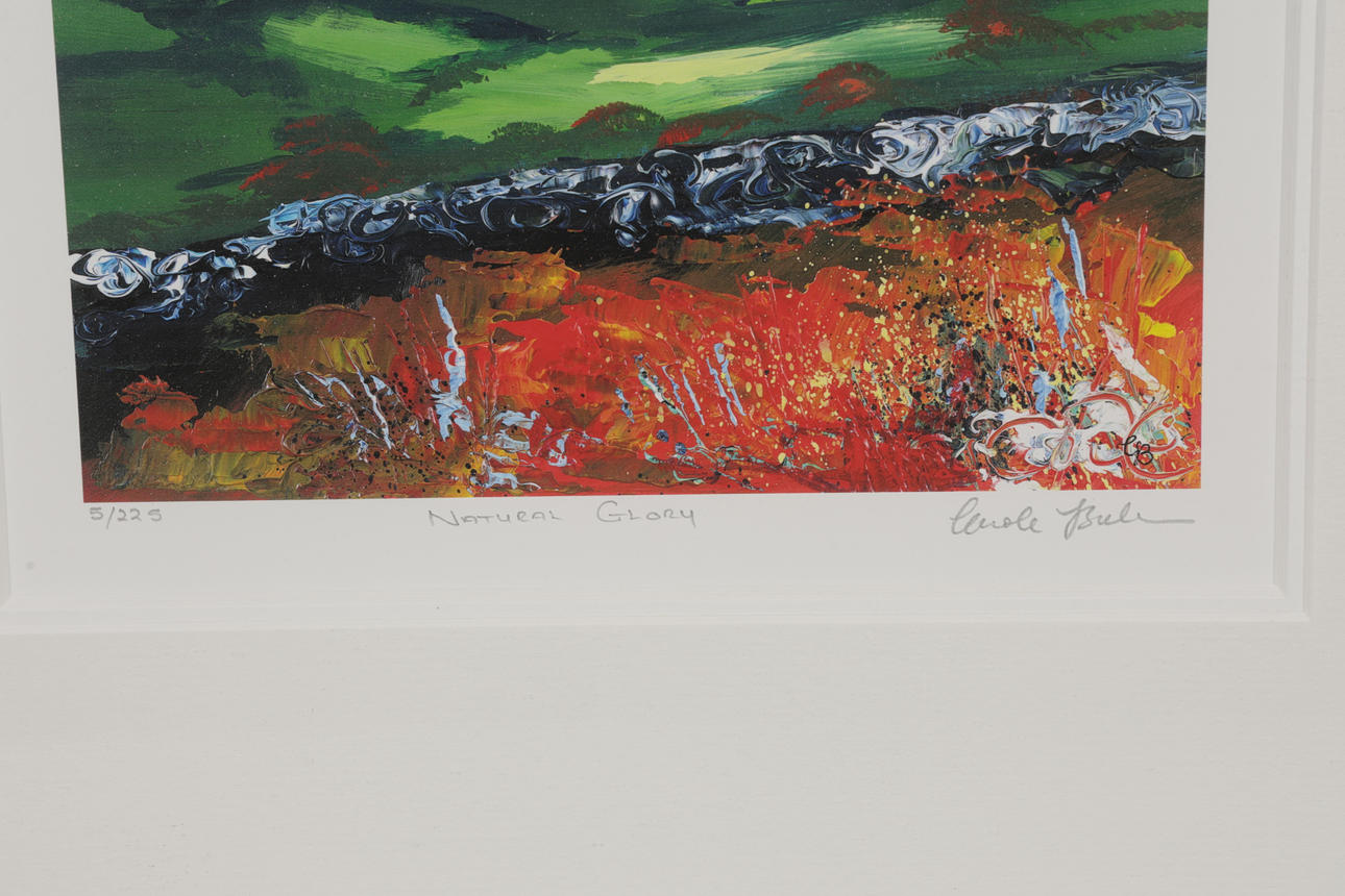 natural glory, pencil signed limited edition print, numbered 5/225, housed within a glazed frame 40cm by 41cm including frame.