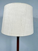 Floor lamp with a teak base and a cylindrical shade made of cream-coloured fabric, with a burner, H.151cm, D.51cm.