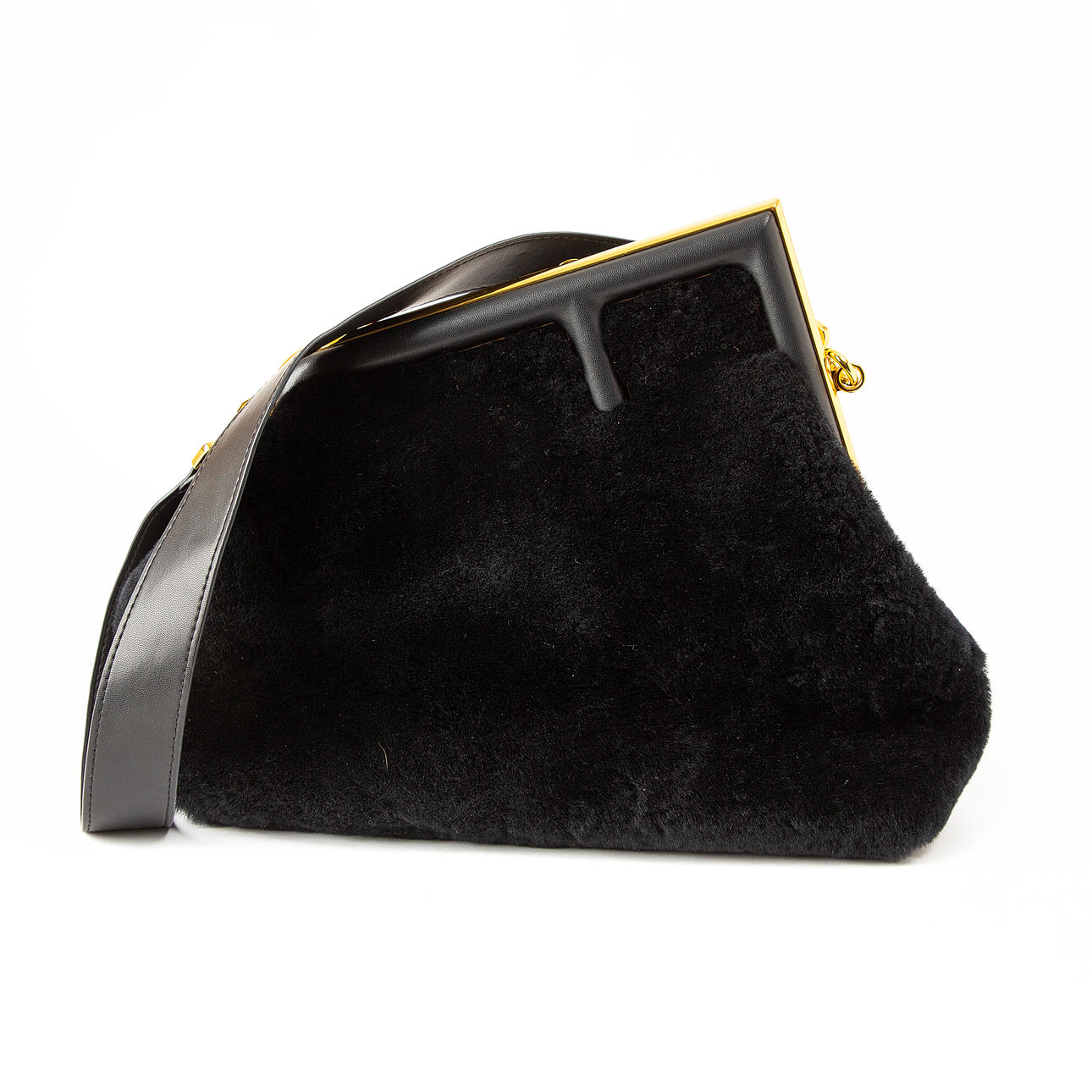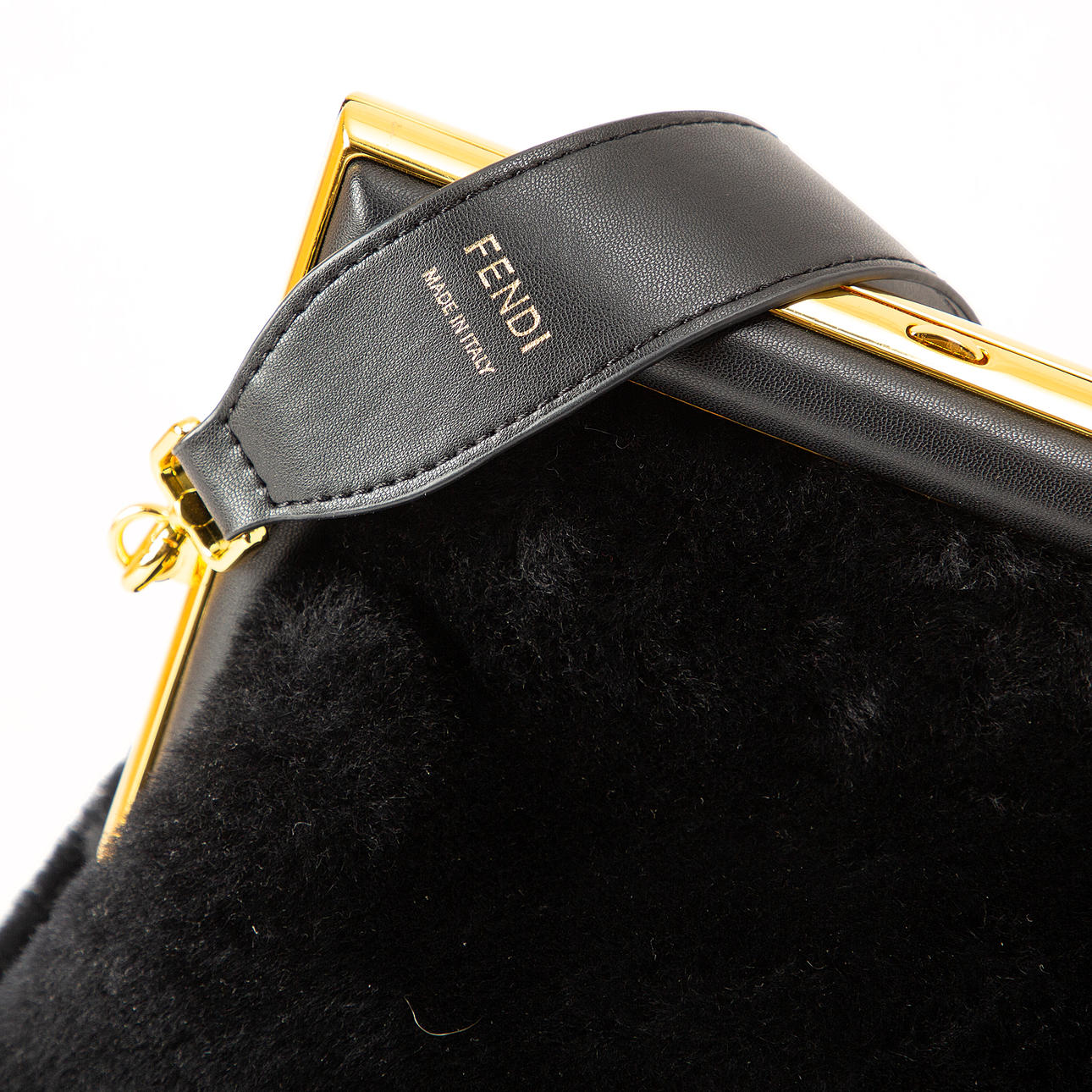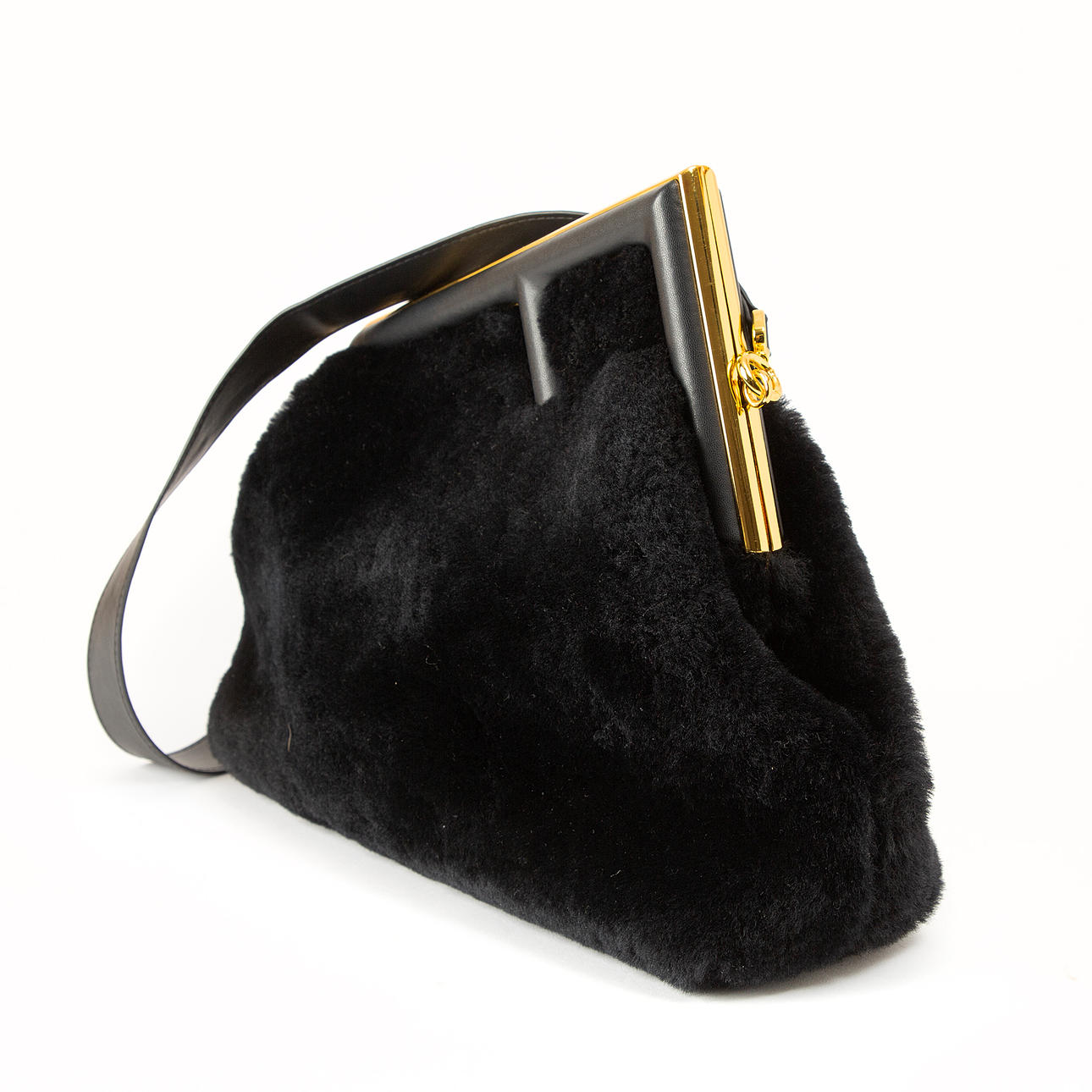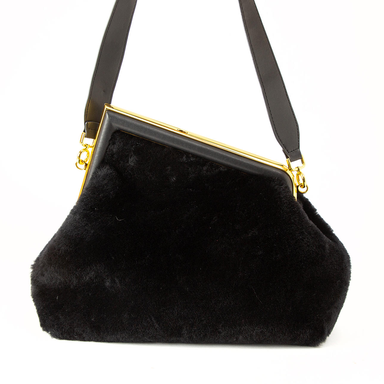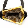 With gold-colored metal details and detachable shoulder strap made of leather. Made in Italy.