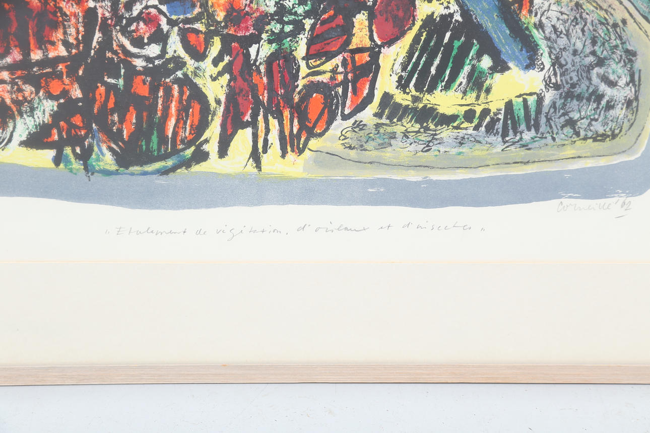 Corneille, born Guillaume Cornelis van Beverloo (1922—2010), was a Dutch artist and co-founder of the Cobra movement. Taking clear influences from Surrealism's ideas of automatism, and with a shared interest in Art Brut such as Jean Dubuffet, Corneille and the other Cobra artists developed an expression that deliberately broke with academic conventions. The result was a seemingly childish and naive imagery, in which colorful animals and anthropomorphic figures populate a fantasy-rich and vibrant world.