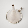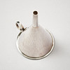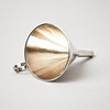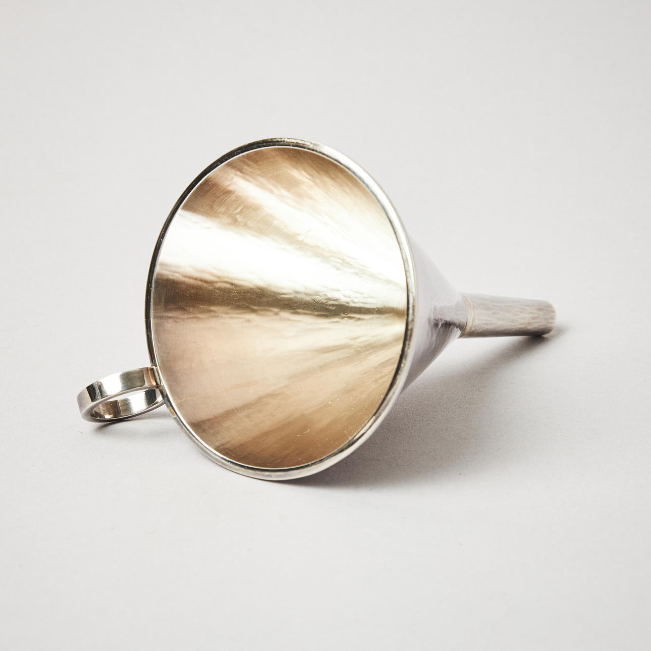 Smooth, with slightly beaten decor, ring-shaped grip. Height 12,5 cm, weight 105 grams.