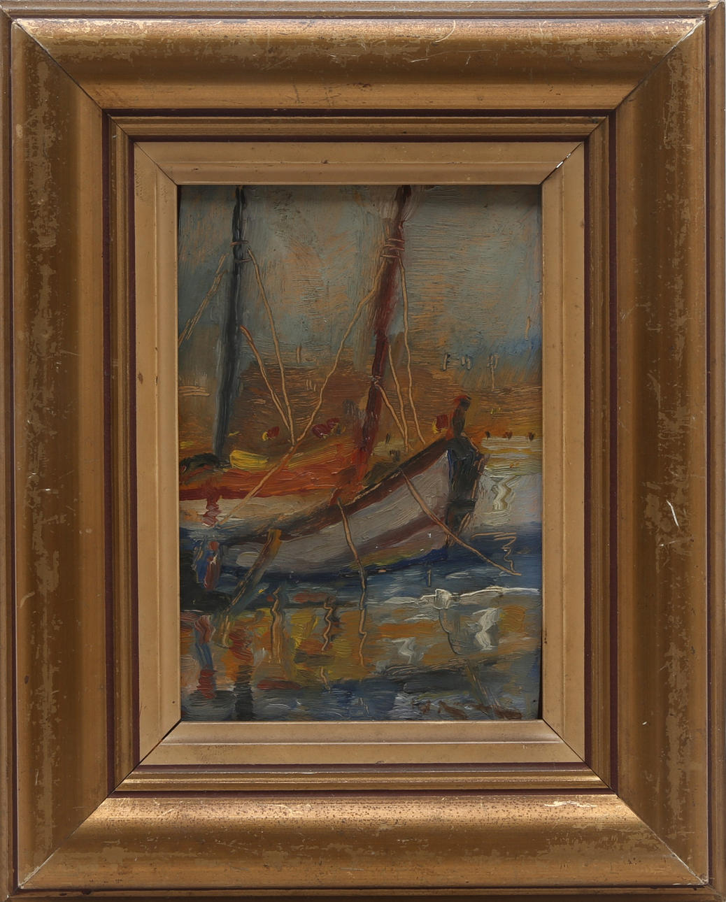 Aged varnish. Gilt wood frame.