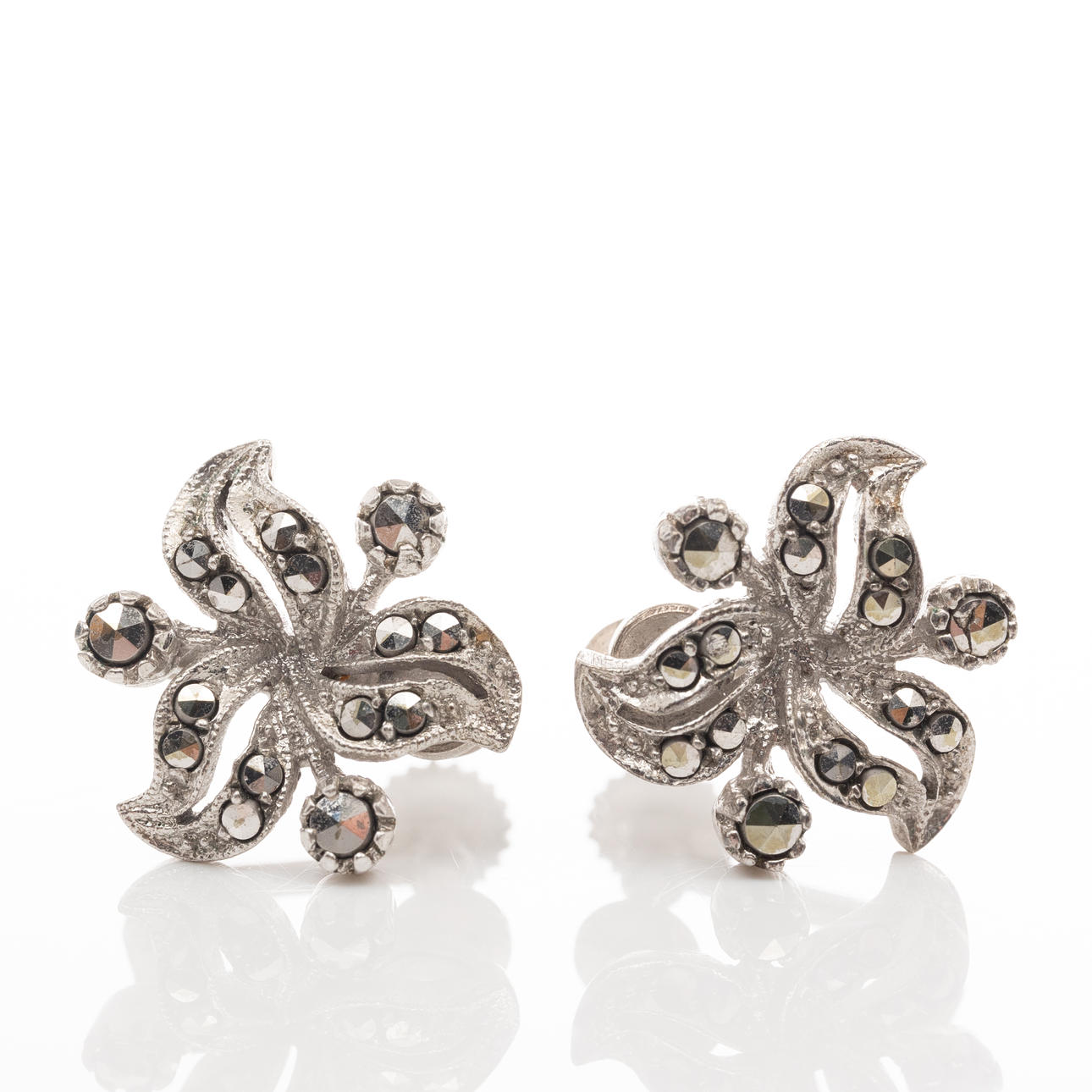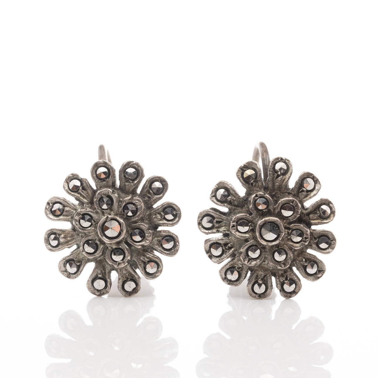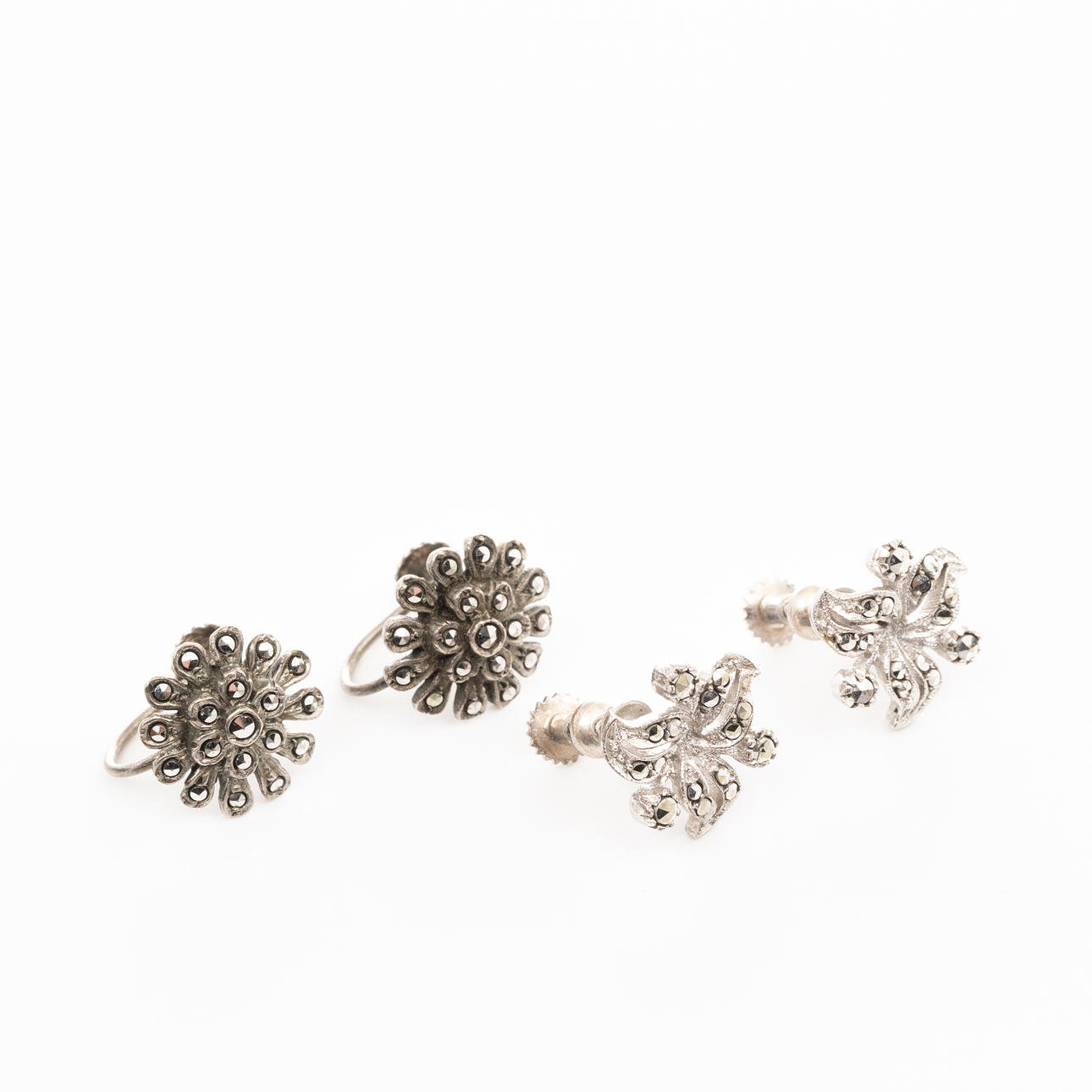 EARRINGS, 2 pairs, Silver, Marcasiter.