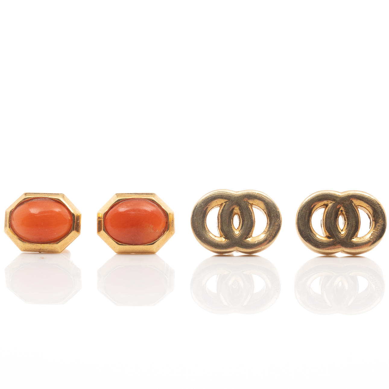A pair of gold-plated silver earrings with cut coral from Italy