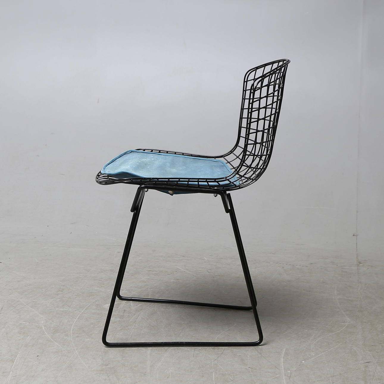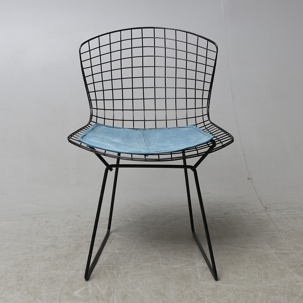 Black lacquered metal frame in grid form. The model designed in 1952. Originaldyna. Back height, 76 cm. Seat height, 44.5 cm.