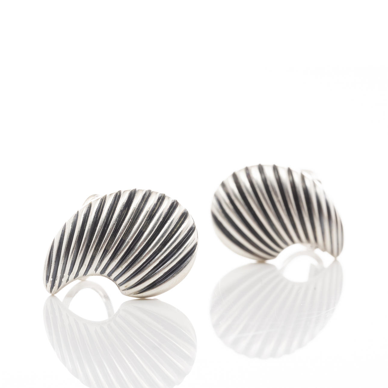 A pair of earrings in the shape of seashells