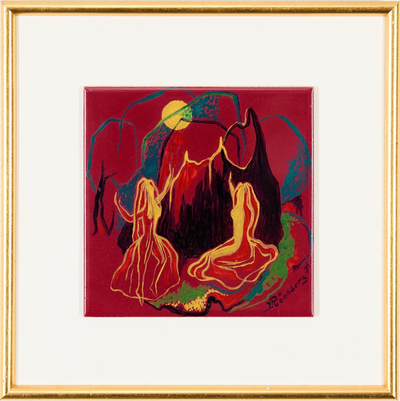 Mixed media on tile. Signed and dated I Rönnberg -74. 15 x 15 cm.