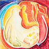 Mixed technique with tamp in relief. Signed and dated I Rönnberg -70. 14 x 14 cm.