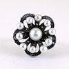4856427. SILVER PEARL AND MARCASITE FLOWER RING.
