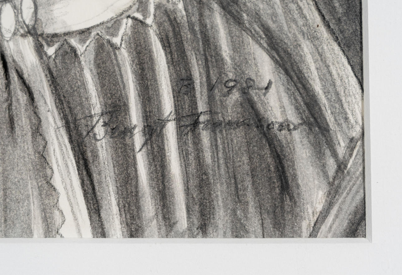 4856857. BENGT FRANSSON. Carbon drawing on paper, portrait, signed and dated 1981.