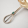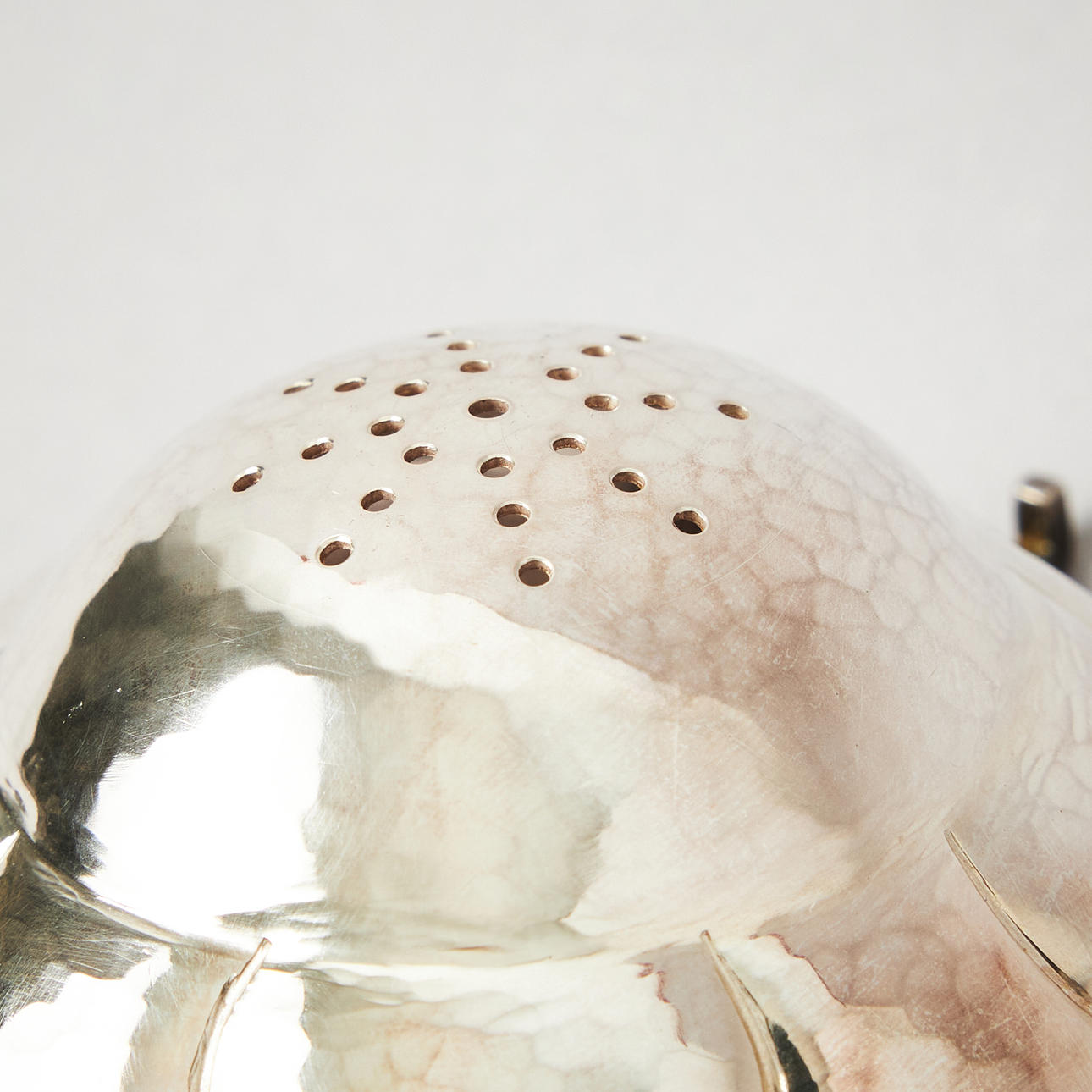 Flower lime-shaped sił, with slightly beaten decoration and openwork grip with cabochon-cut stone, drip beaker with slightly beaten decoration. Strainer length 14 cm, beaker height 5.2 cm, total weight 148 grams.