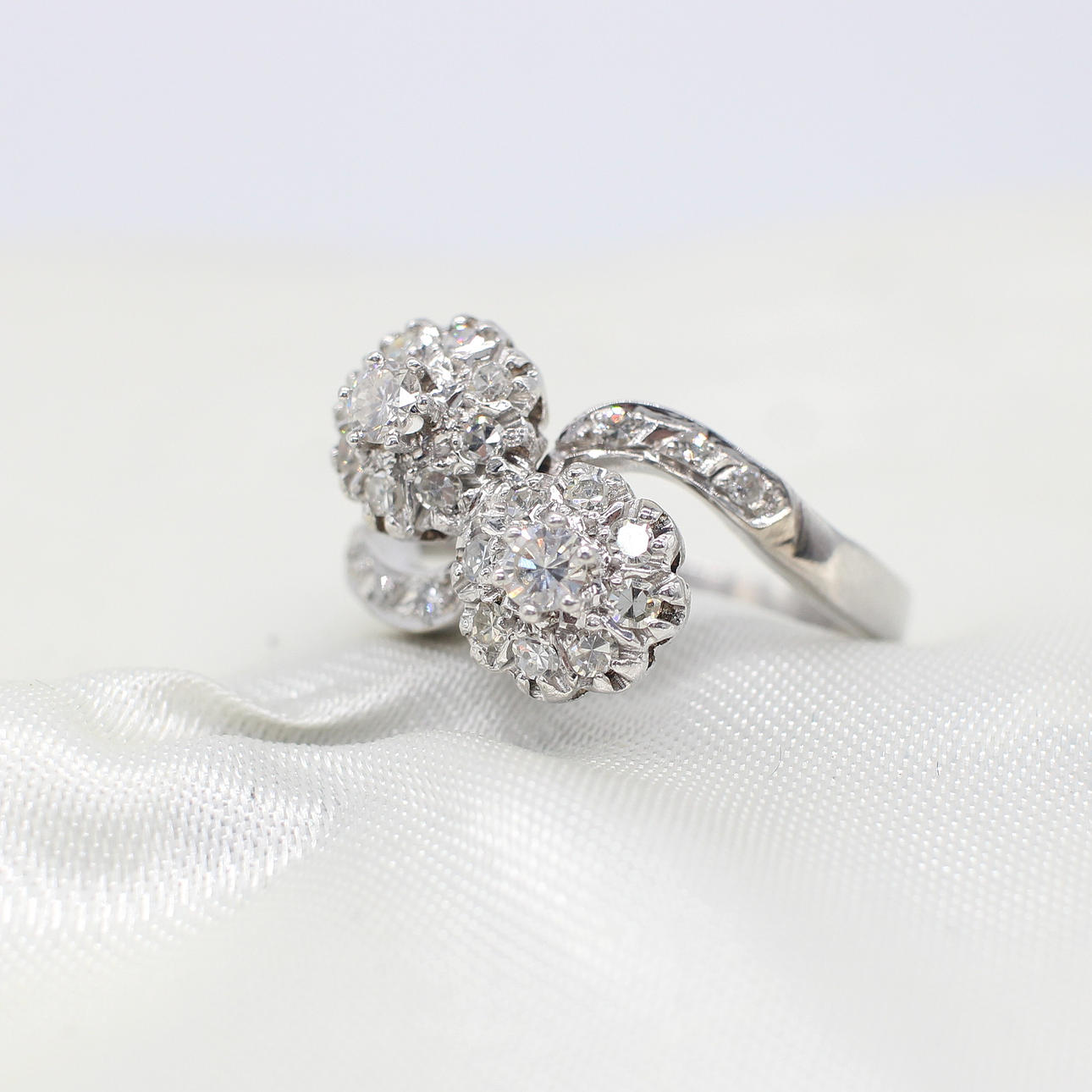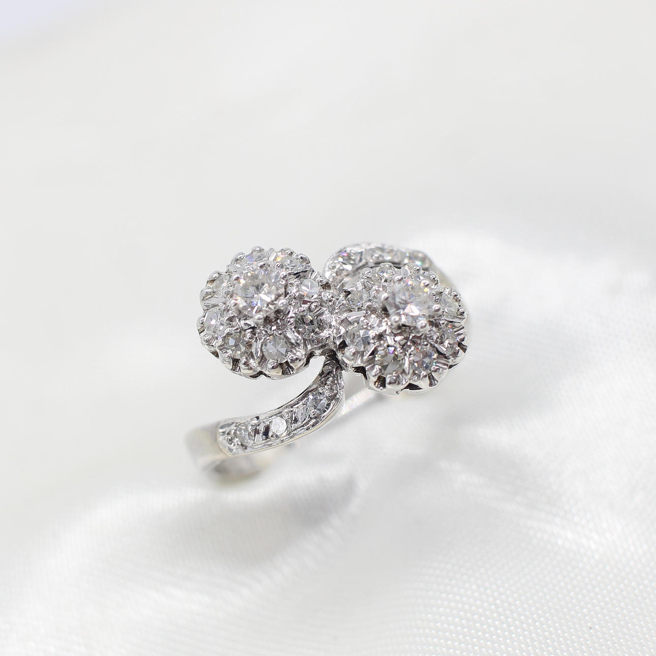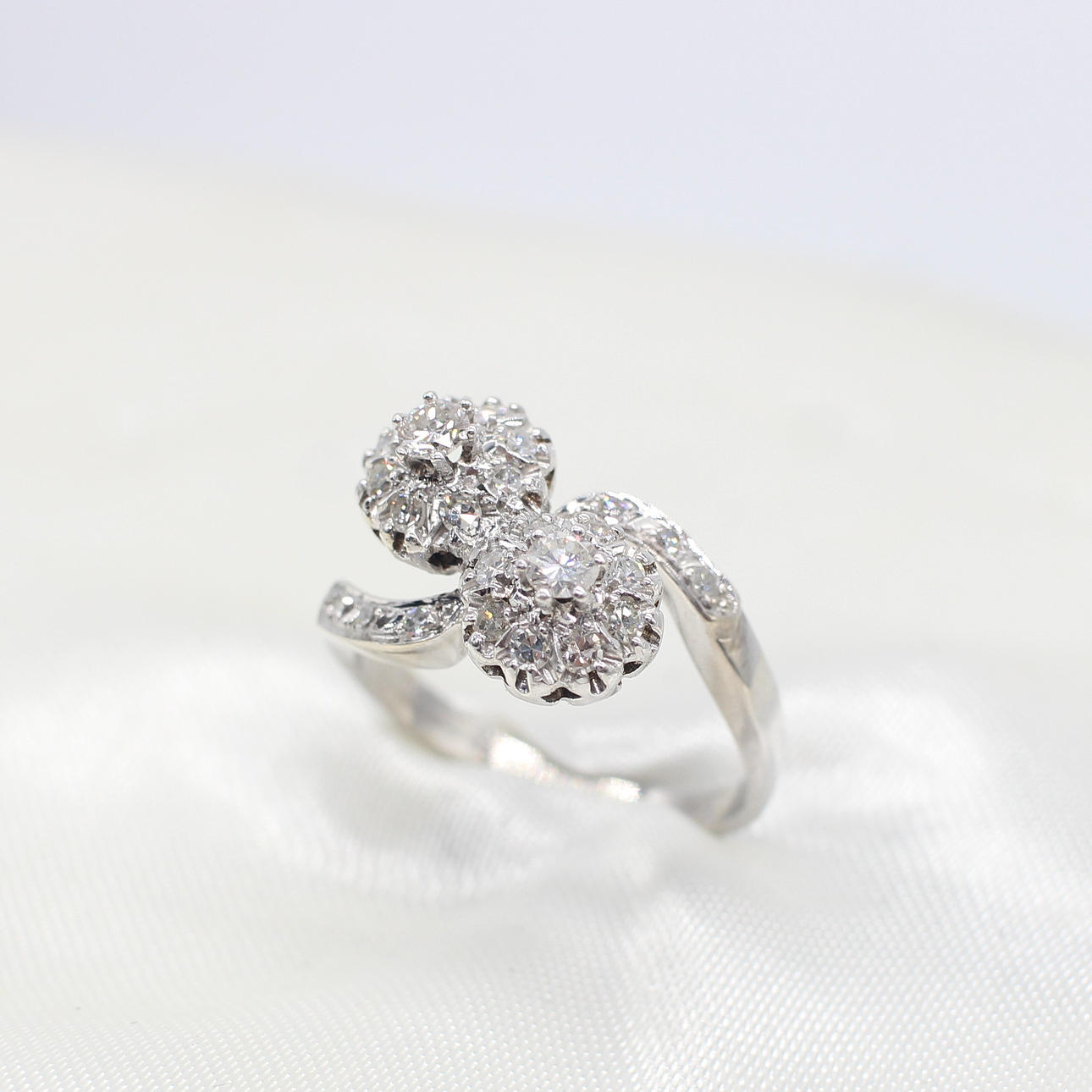 An Independently Certificated 14ct White Gold (Tested As But Unmarked) Diamond Twist Cluster Ring.