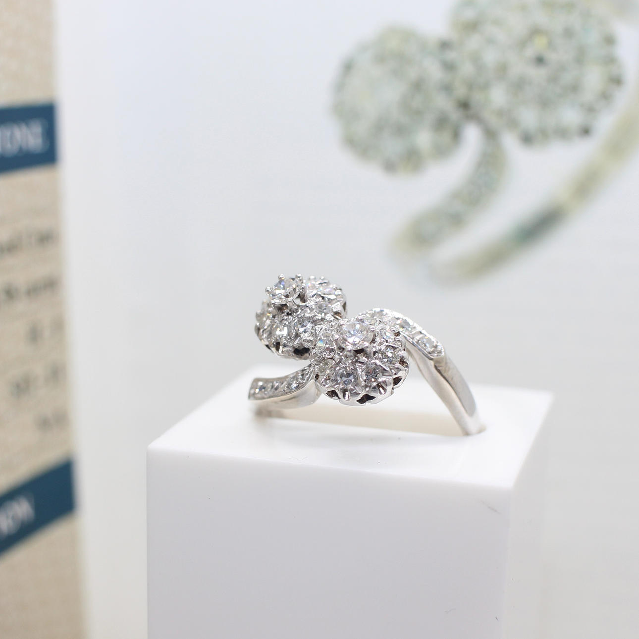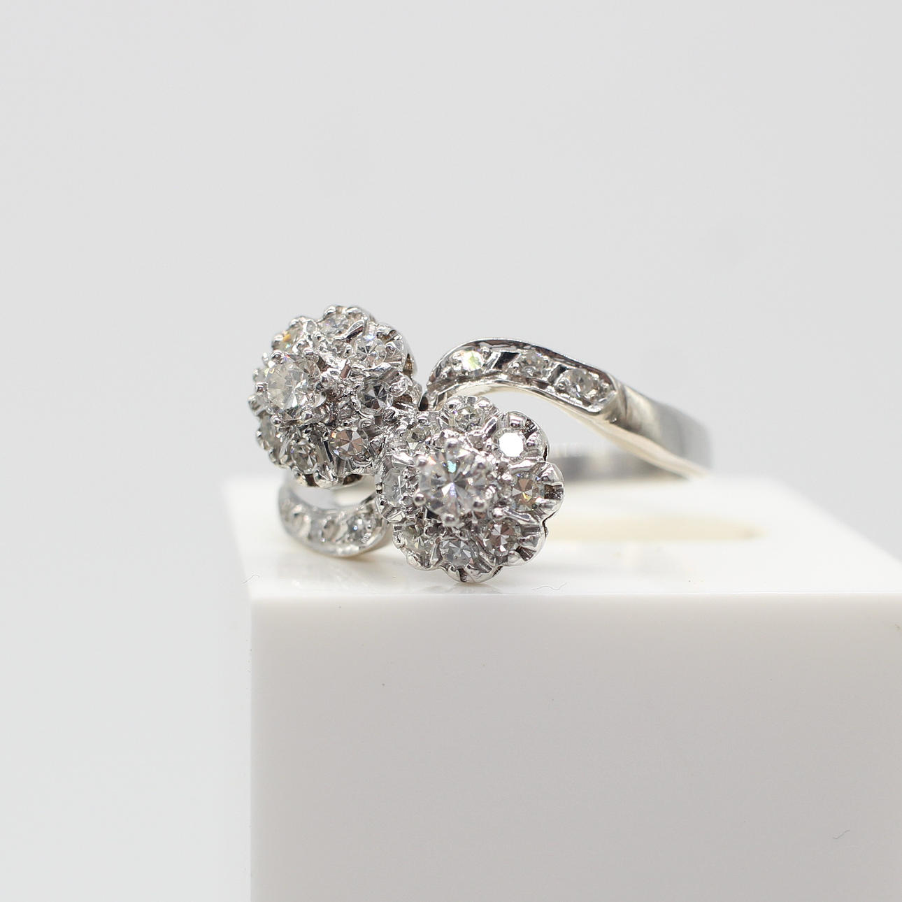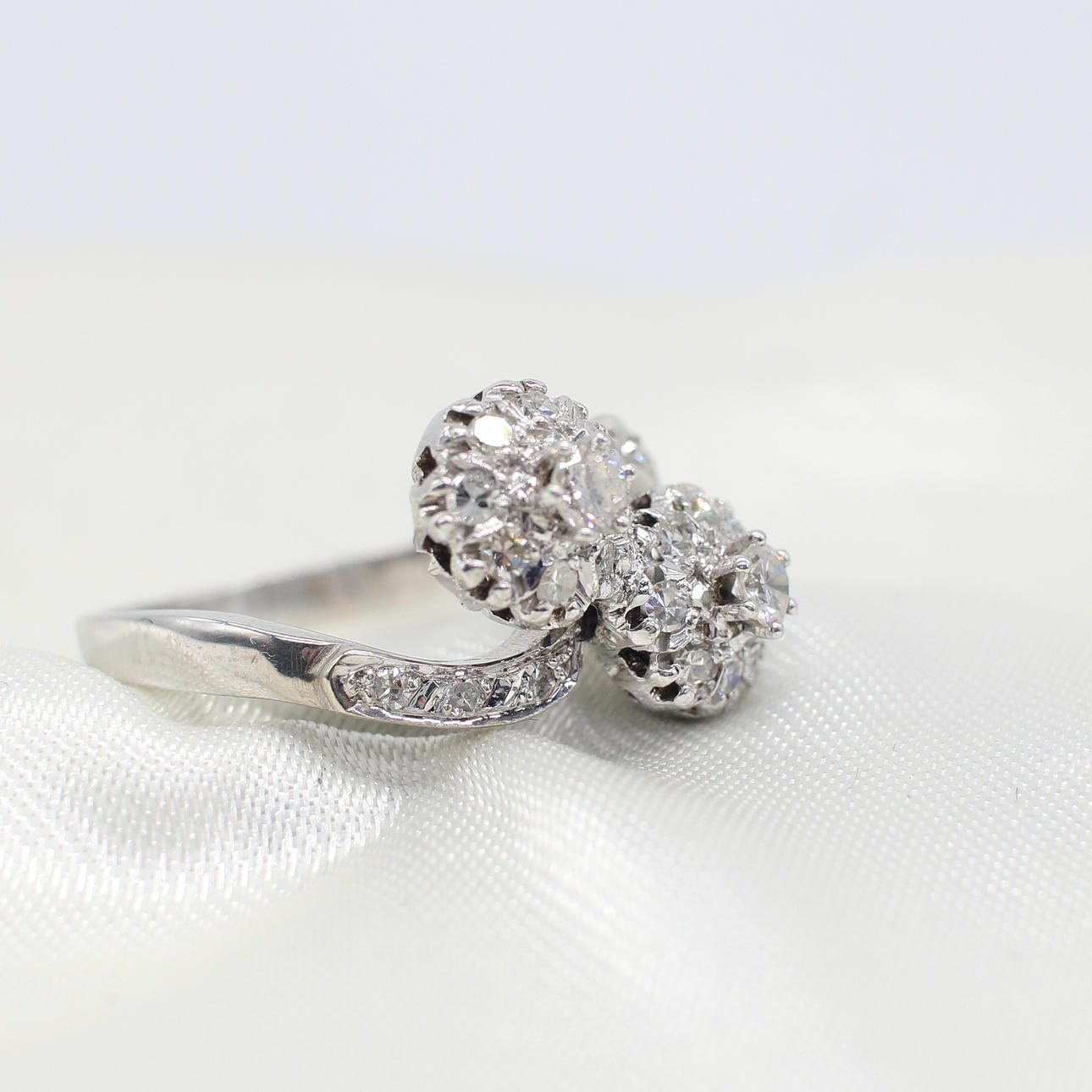 An Independently Certificated 14ct White Gold (Tested As But Unmarked) Diamond Twist Cluster Ring.