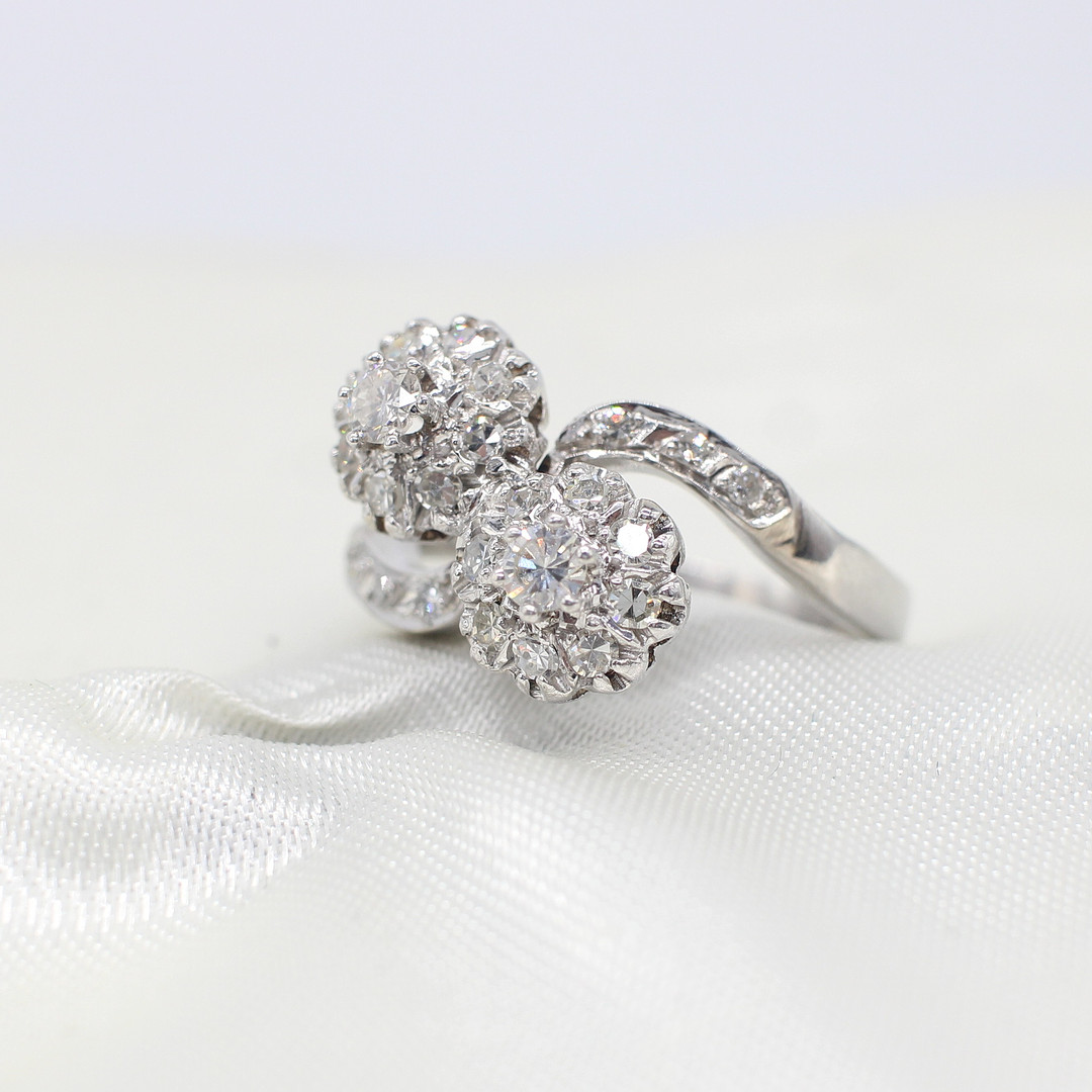 4858753. CERTIFIED DIAMOND DOUBLE CLUSTER RING.