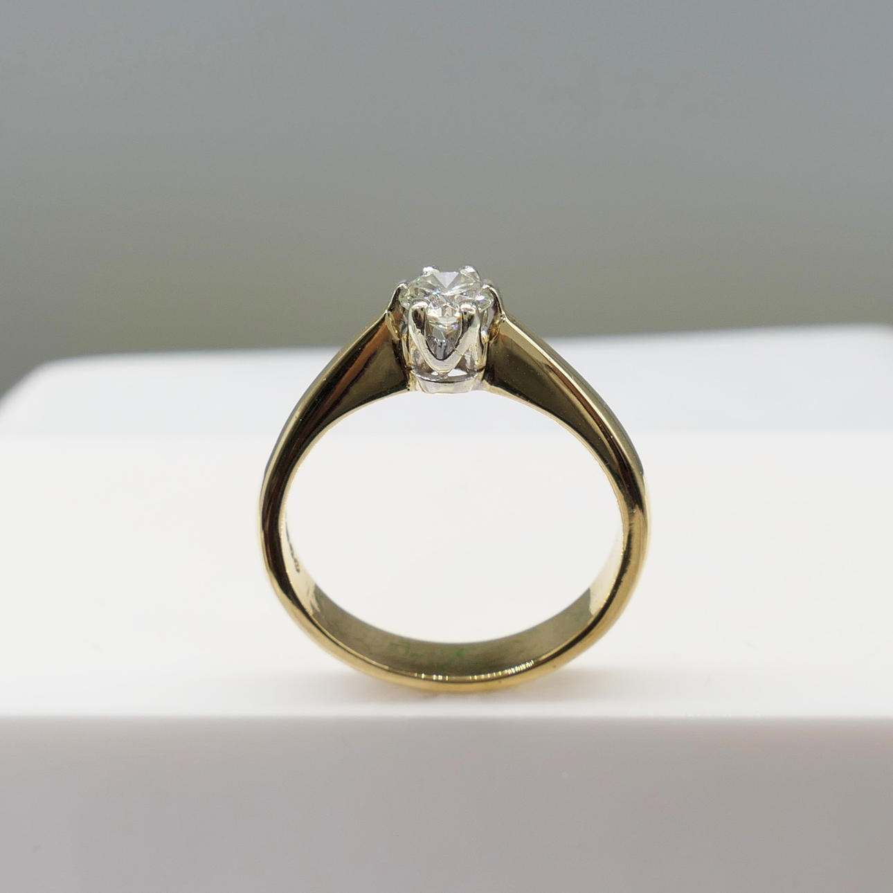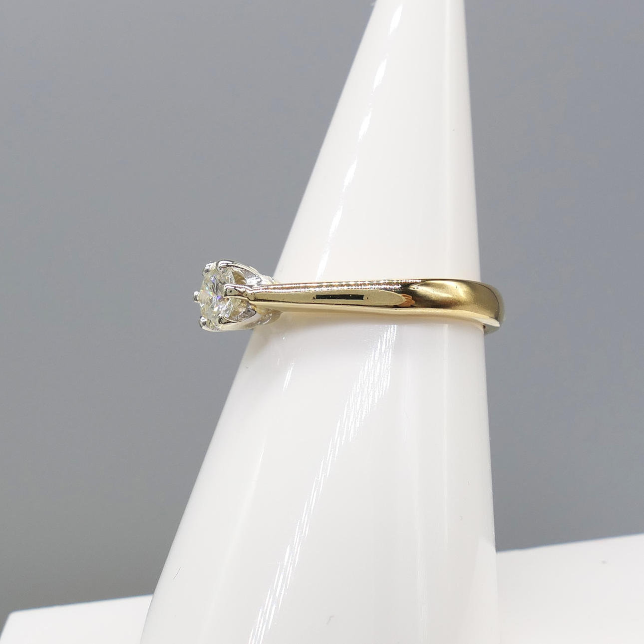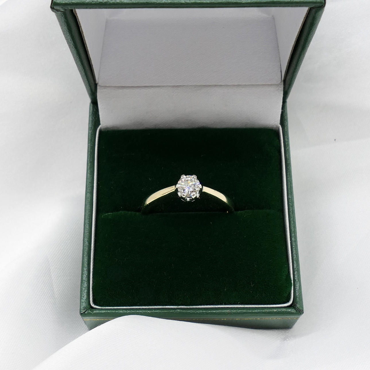 A good quality diamond solitaire ring in yellow and white gold, with gifting box