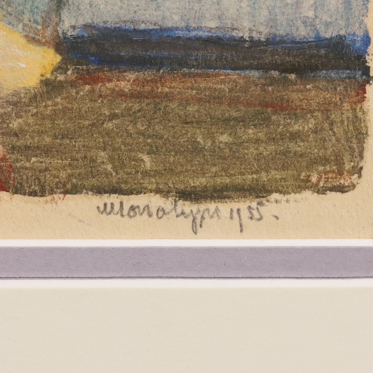 SQUARES SAETHER. Monotype colour print, “Elenor and Monkey”, sigenrad and dated -1955.