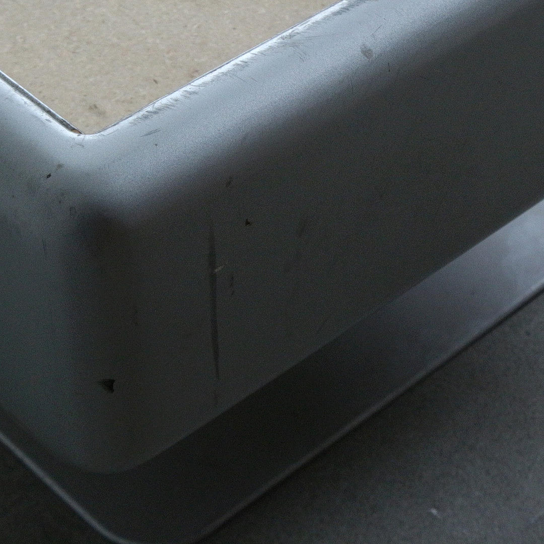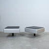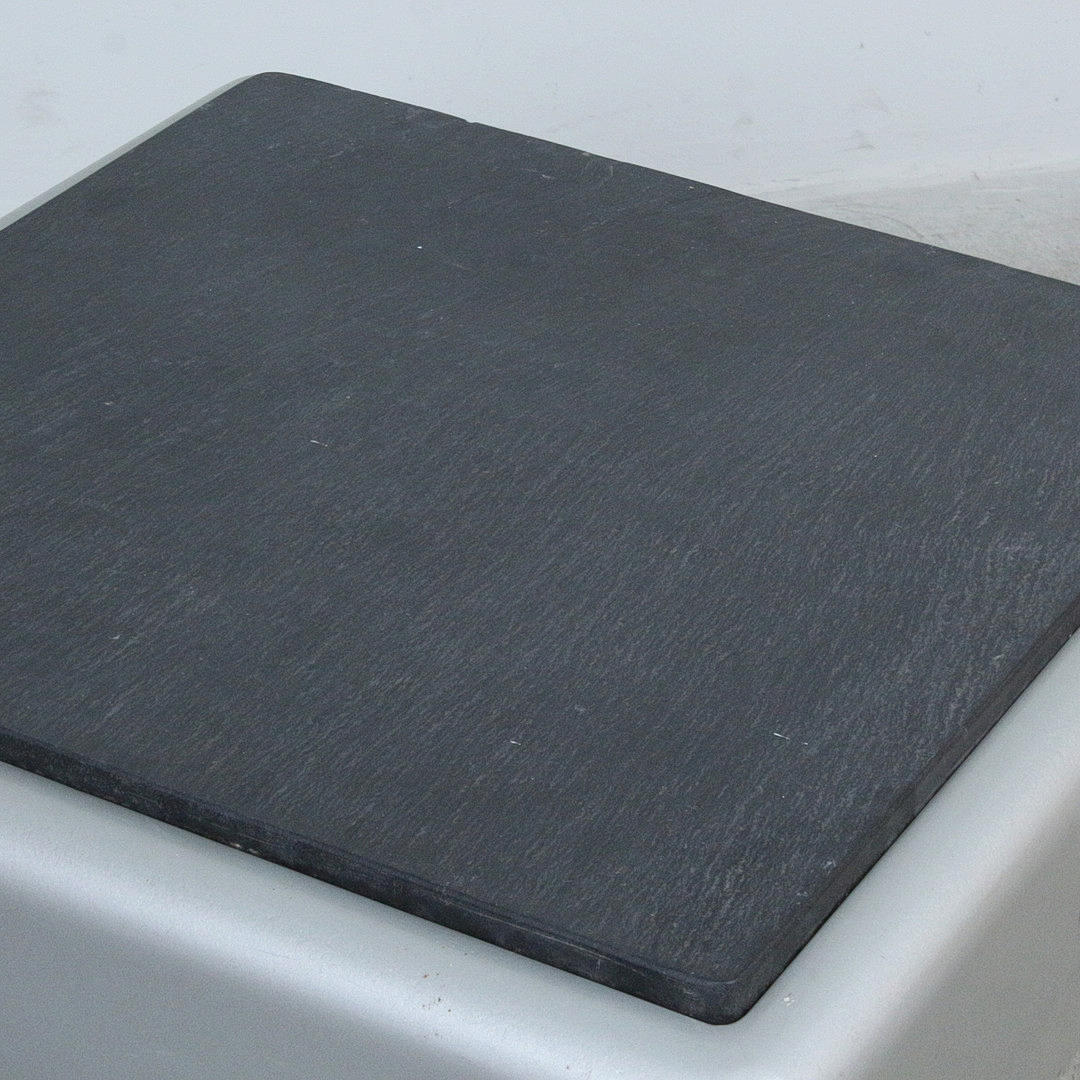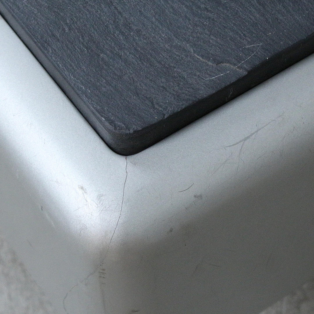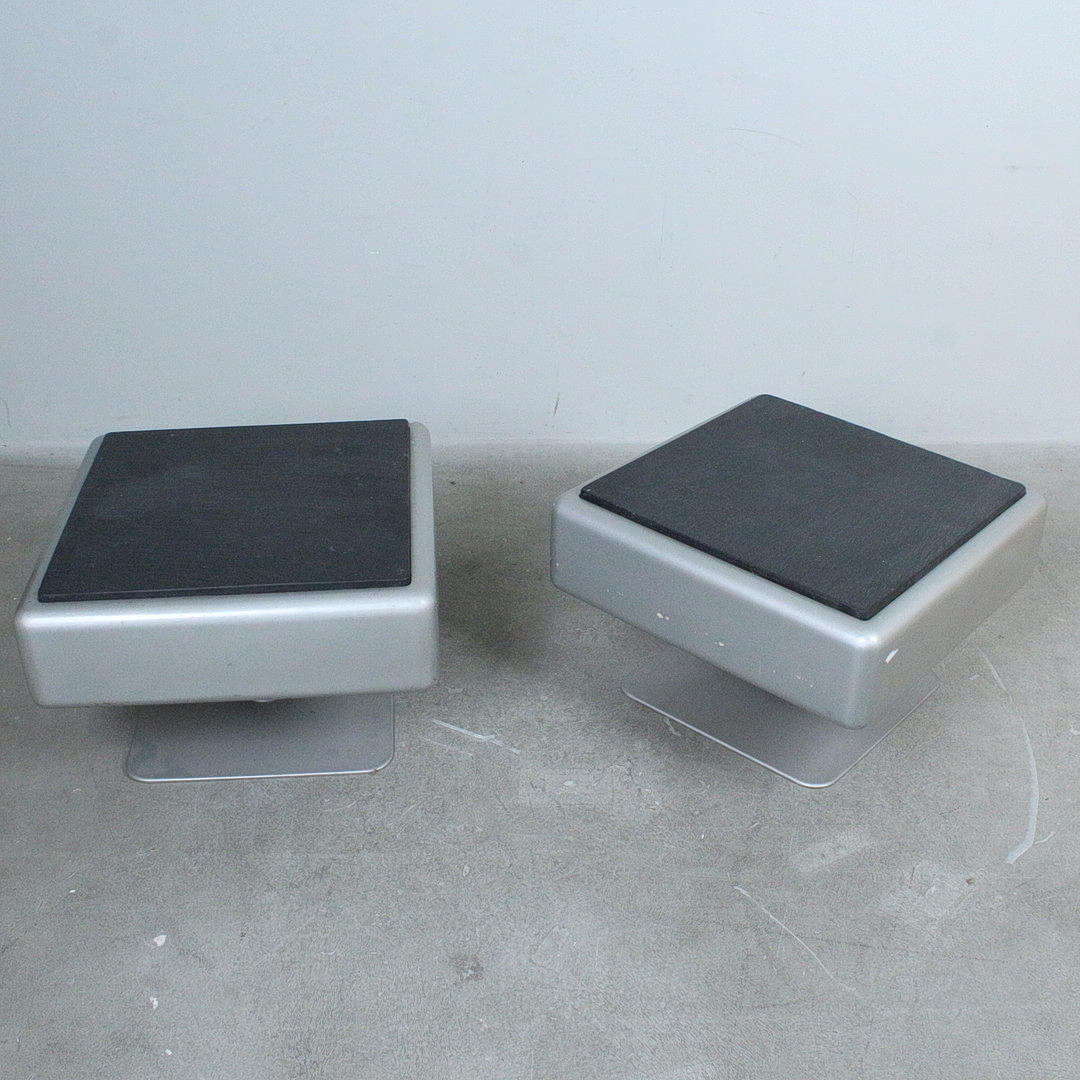 The tables consist of a plastic housing with a black slate plate on an aluminum base. Dimensions: h. 45 cm. B. 68 cm Depth 68 cm.