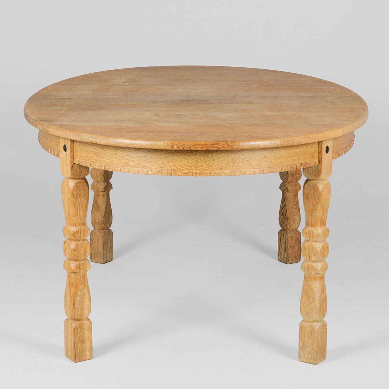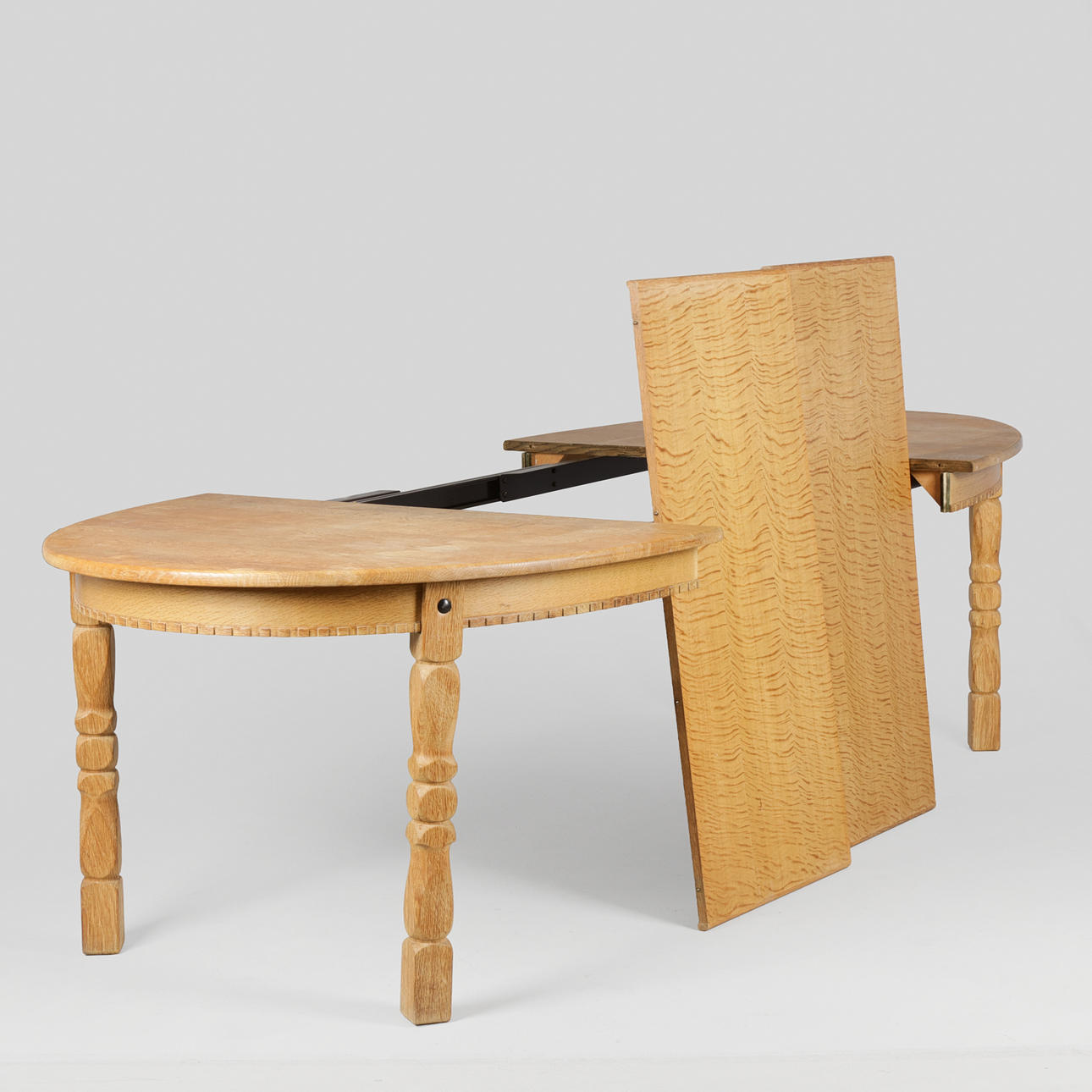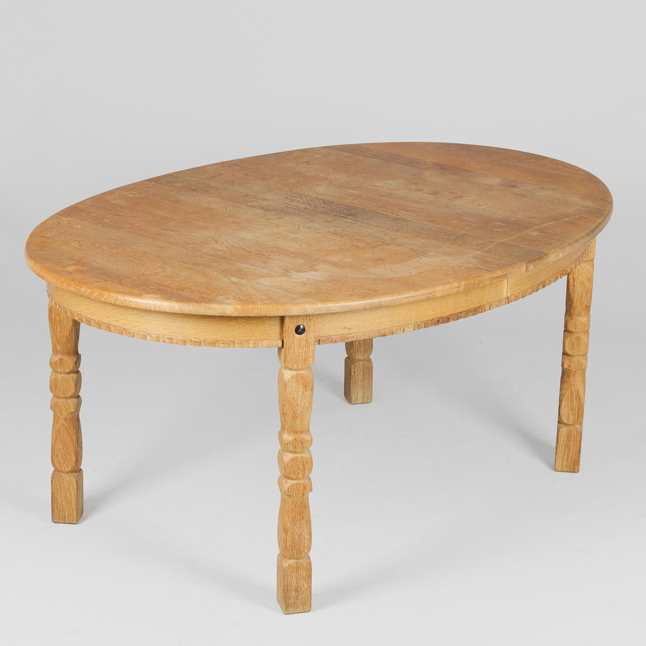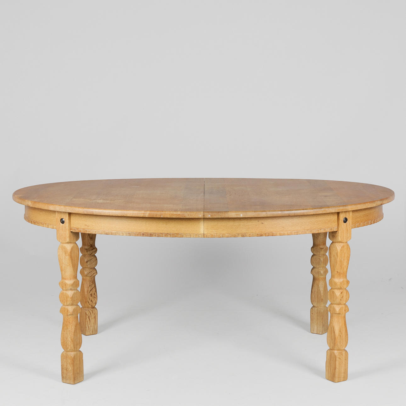 4864288. Oval oak dining table with pull-out and two additional plates, Kjærnulf style, Danish furniture manufacturer, Denmark, circa 1960/70s, (1+2).