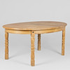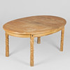 Oval dining table in solid oak with pull-out and two additional plates made of solid oak. Made by Danish furniture manufacturer.