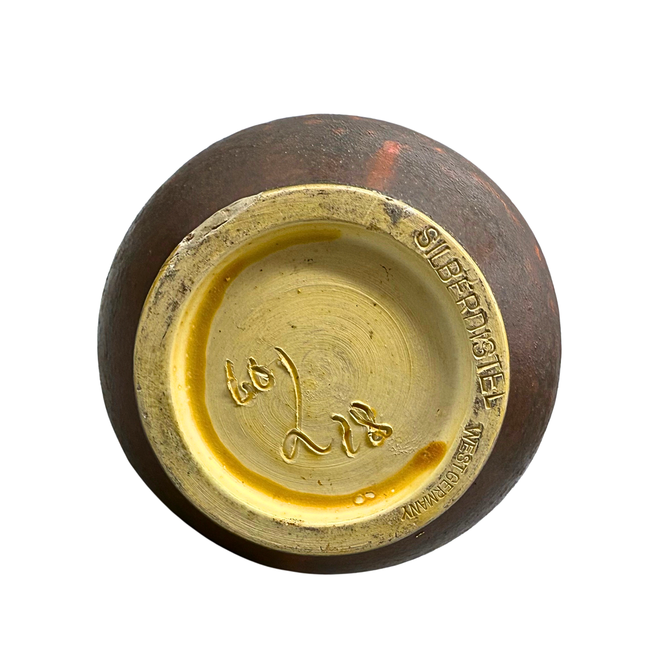 handmade ceramic vase, stamped with “Silberdistel” and “West Germany” on the underside, signed and dated “66".