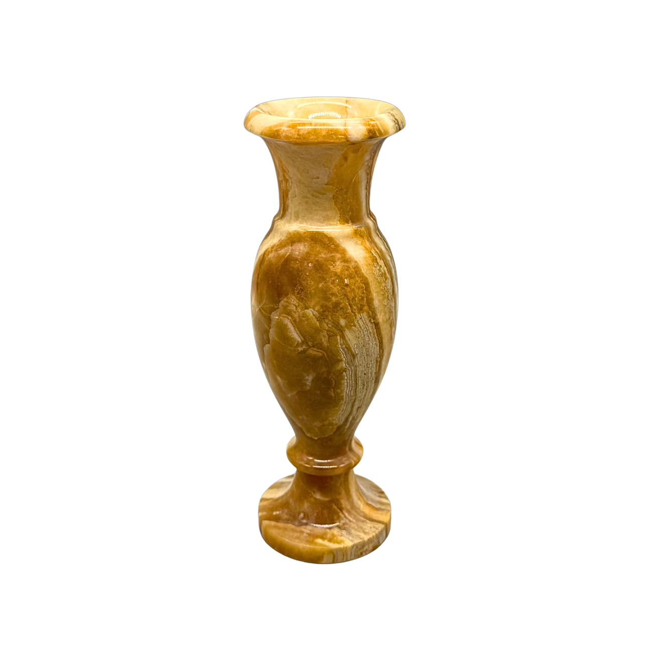 handmade onyx vase in brown-orange tones.