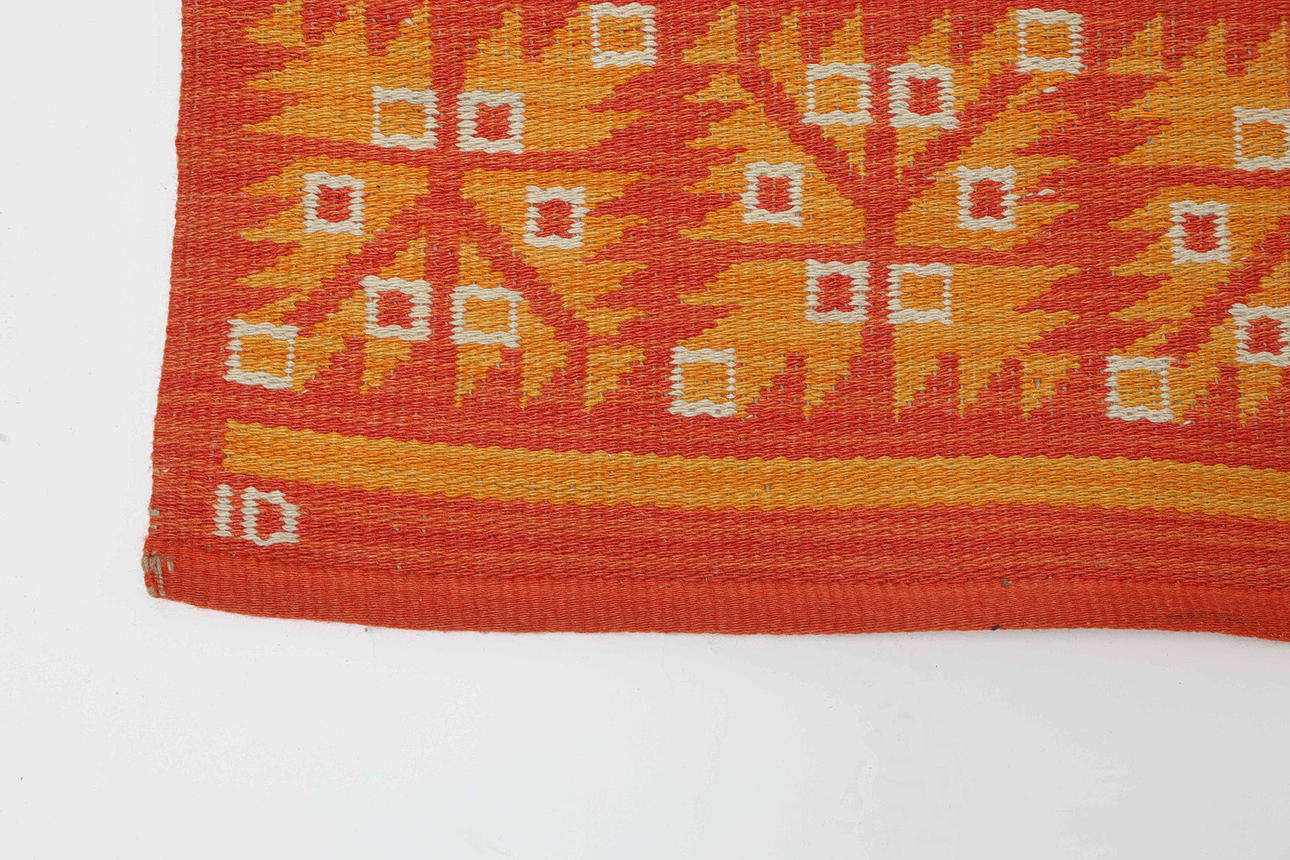 Reversible, red and yellow tones, wool.